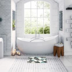 Promo βοΈ Evideco Contour Bath Rug Memory Foam Mat White 20″L X 20″W Almond Green π