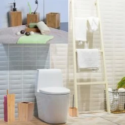 Outlet β¨ Evideco Round Bathroom Trash Can PADANG White With Bamboo Lid 1.3 Gal – 1.3 Gal π