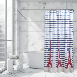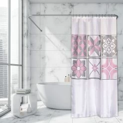 Outlet π₯° Evideco Extra Long Shower Curtain Polyester Hook Less Cubic 79″L X 71″W Beige Camel π