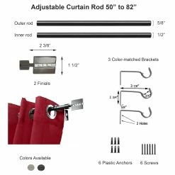 - EASILY EXTENDS : You can easily adjust the width of your curtain rod to your window’s dimensions with this extendable curtain rod set from 50″ to 82″ L. The set includes two 5/8″ D telescopic steel tubes. Sold by 2 Pack