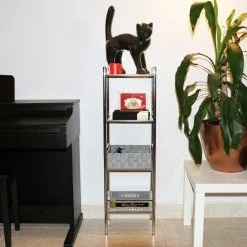 - SPACE-SAVING STORAGE SHELF : Ideal for tight spacesor in a room’s corner, this 4-tier shelf creates space through its height. This shelf features a slim figure to stand in any suitable place in your house. Dimensions : 42.8″H x 13″L x 11″W. The roomy shelves give you plenty of options to store your odds and ends, bathroom essentials, kitchen supplies, decorative elements, linens and towels, ideal to store and hold whatever you put on it