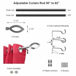 - EASILY EXTENDS : You can easily adjust the width of your curtain rod to your window’s dimensions with this extendable curtain rod set from 50″ to 82″ L. The set includes two 3/4″ D telescopic steel tubes. Sold individually