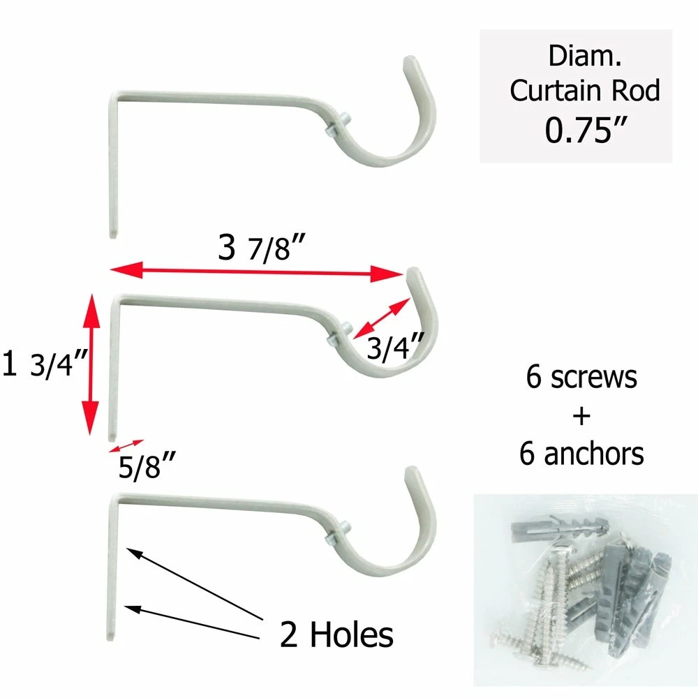 - STURDY : Made of sturdy steel construction for a sturdy long-lasting use. 3 color-matched brackets are supplied. By using one bracket in the middle of the rod, you avoid any bend