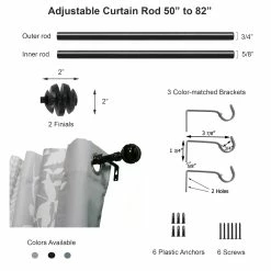 - EASILY EXTENDS : You can easily adjust the width of your curtain rod to your window’s dimensions with this extendable curtain rod set from 50″ to 82″ L. The set includes two 3/4″ D telescopic steel tubes. Sold individually
