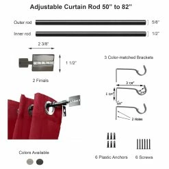 - EASILY EXTENDS : You can easily adjust the width of your curtain rod to your window’s dimensions with this extendable curtain rod set from 50″ to 82″ L. The set includes two 5/8″ D telescopic steel tubes. Sold individually