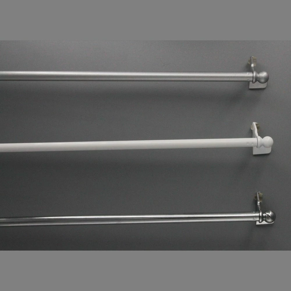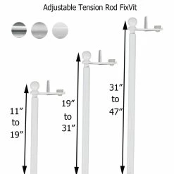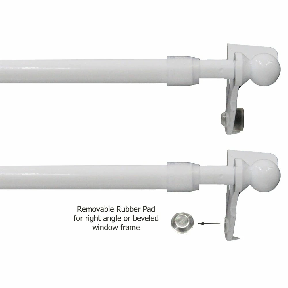 Bring an extra flourish to your window voilages with this extendable tension rod FixVit, diameter 0.5 inch, adjustable from 31 to 47 inches (80-120 cm), perfect for holding your pretty valances and tiers. The adjustable curtain rod can be installed quickly, easily and it’s gentle on walls, no drilling, screws, or tools are required. For right angle or beveled window frame remove rubber place hooks between joint and window frame. Speedy round shape extendable rod is endlessy repositionable, and can be set up on any kind of windows. Features a versatile white powder coated metal finish to match a variety of home decor styles. Available in many sizes : 11 to 19 inches (30-50 cm), 19 to 31 inches (50-80 cm) or 31 to 47 inches (80-120 cm). Universal patent FixVit. Color white also available in silver or chrome, diameter 0.5 inches also available in 0.6 inches . This sheet rod is imported from France and made in PRC. This telescoping self blocking bar makes hanging net and sheer drapery a breeze.