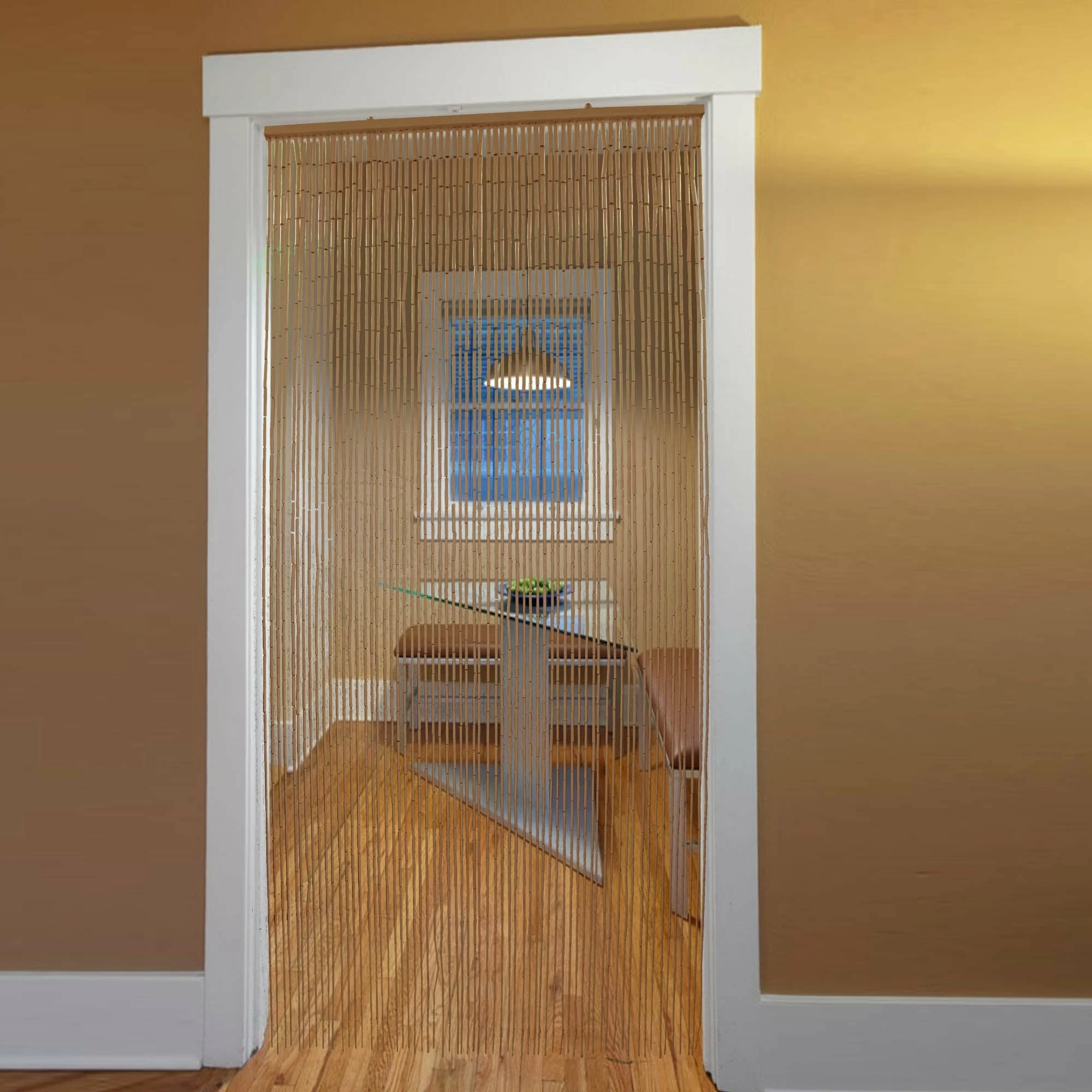 - NATURAL BARRIER: Featuring 65 strands, this bamboo beaded curtain prevents flies and mosquitoes from entering. It lets in air and light while bringing privacy