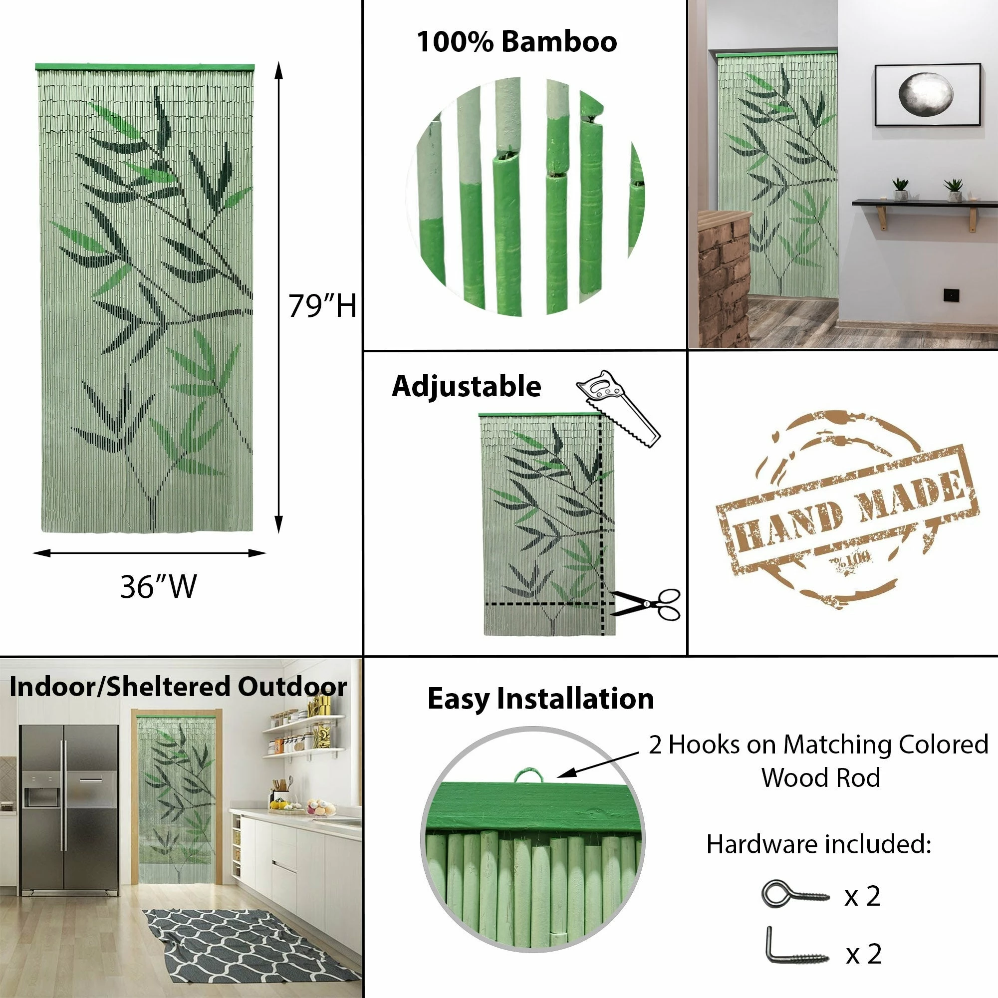- EASY INSTALLATION: This curtain door arrives fully assembled with 2 hooks attached to the wood rod. 4 screws included to complete the installation