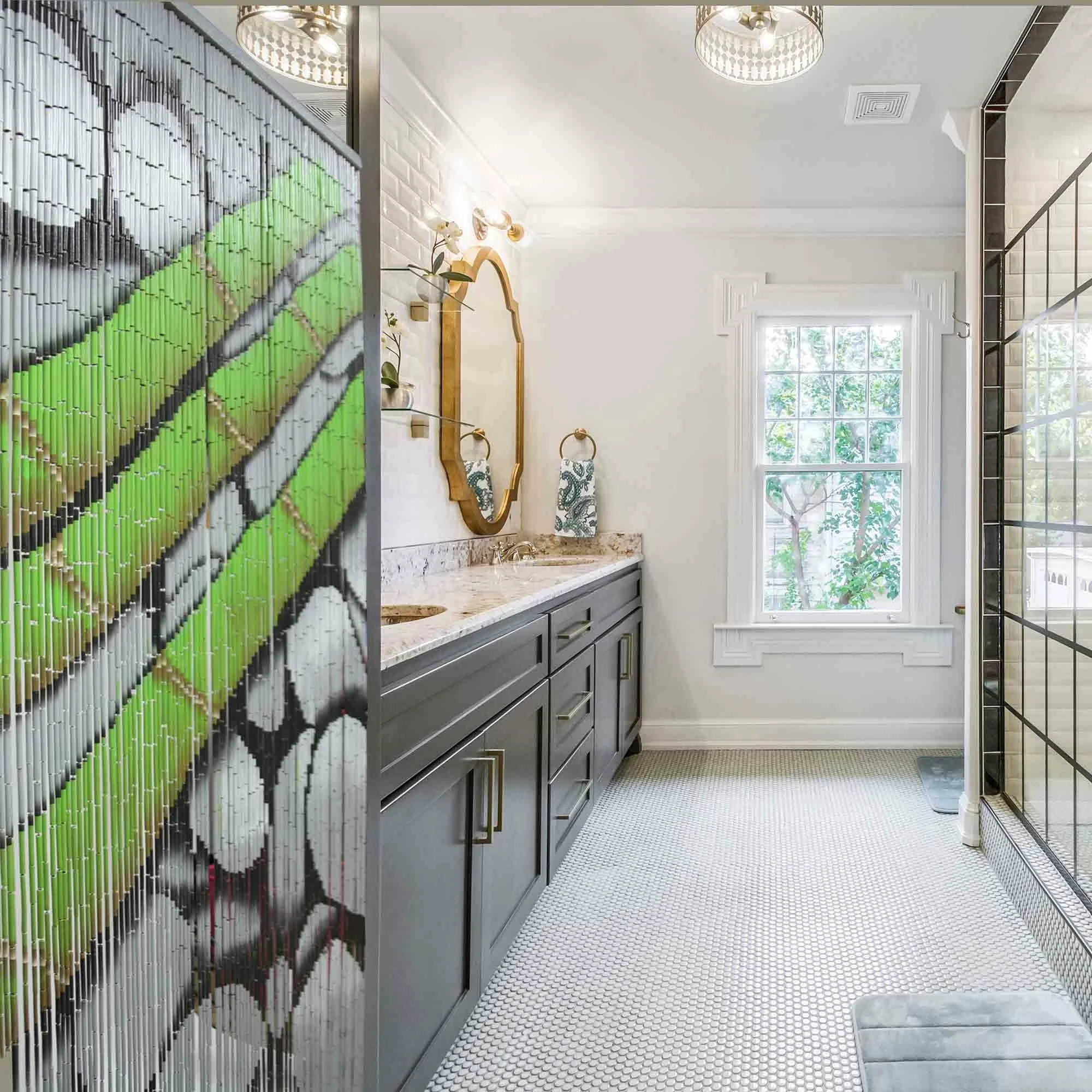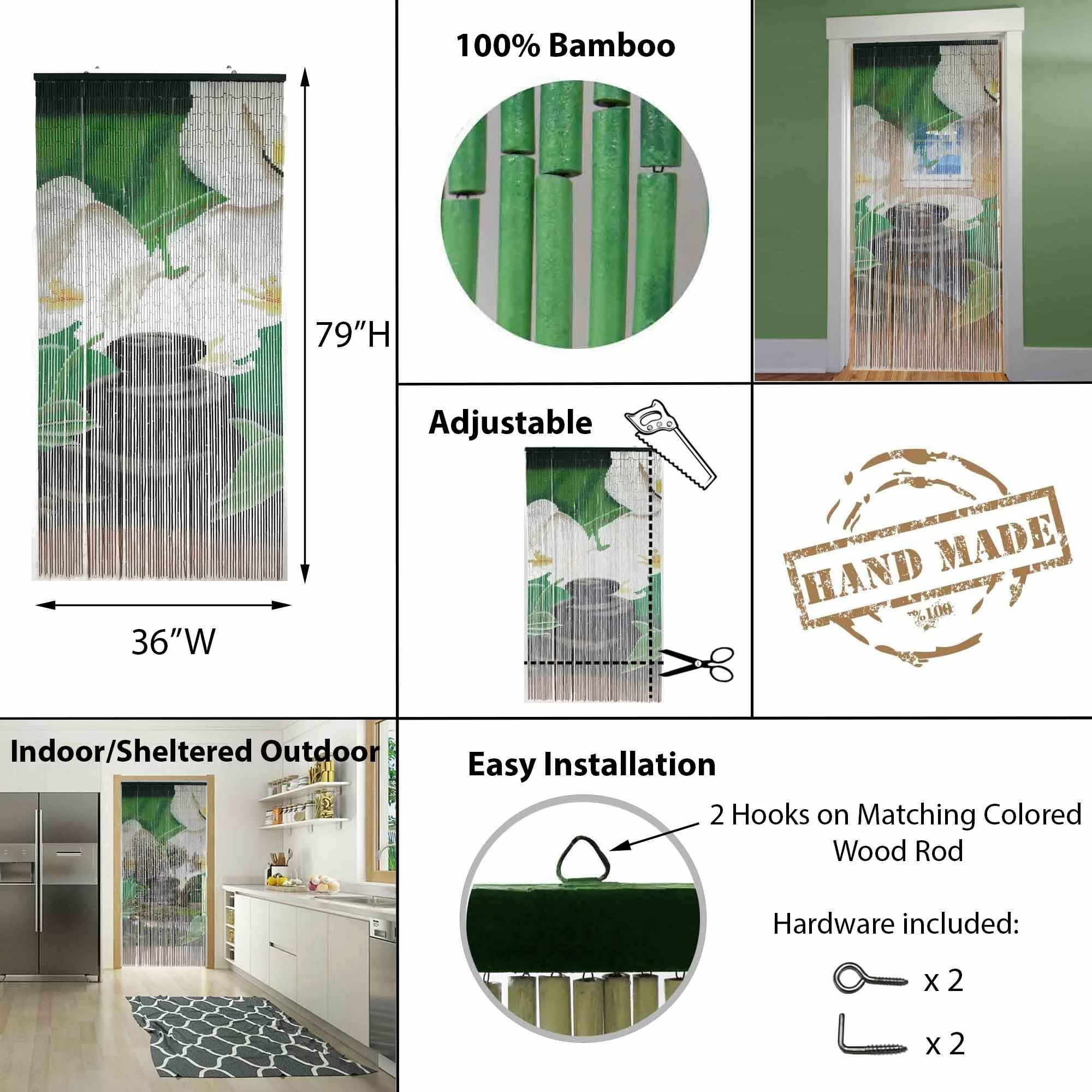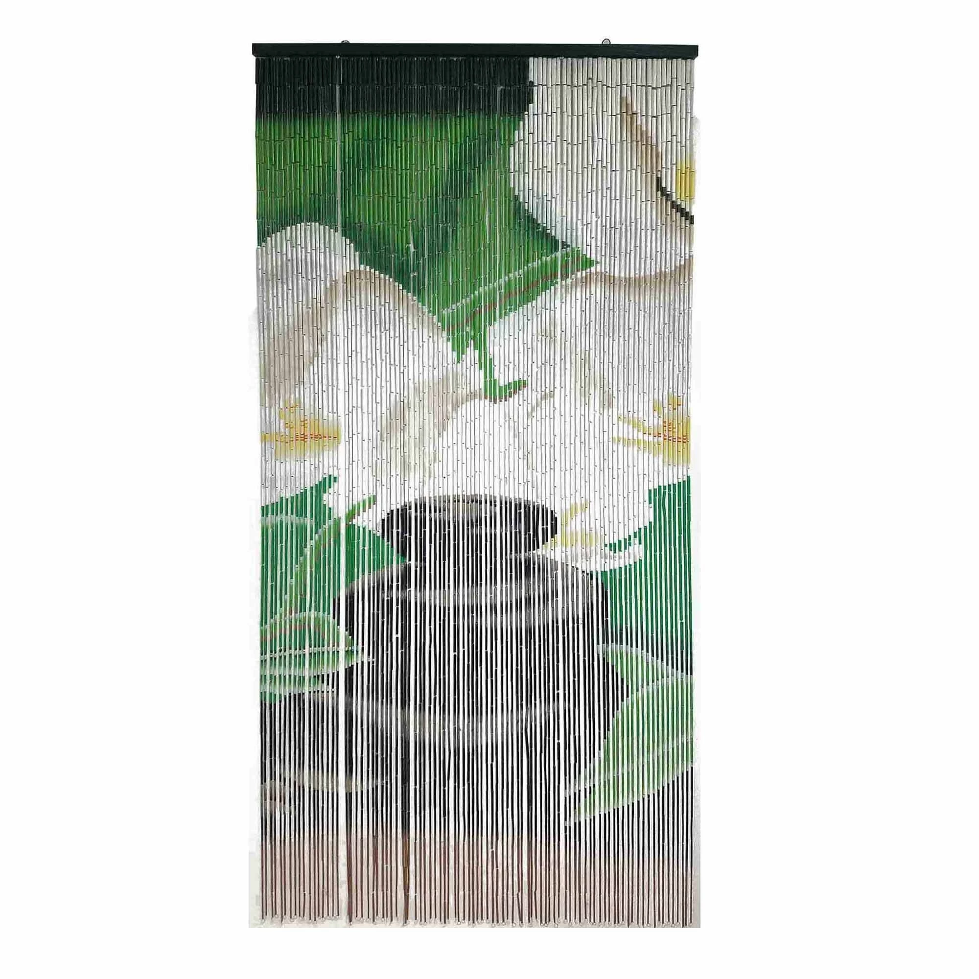 - HANDCRAFTED: Made from natural bamboo tubes, this hand-painted curtain is the perfect solution to enhance any room. Visible image on both sides. 4 models available: leaves, lagoon, orchids or pebbles
