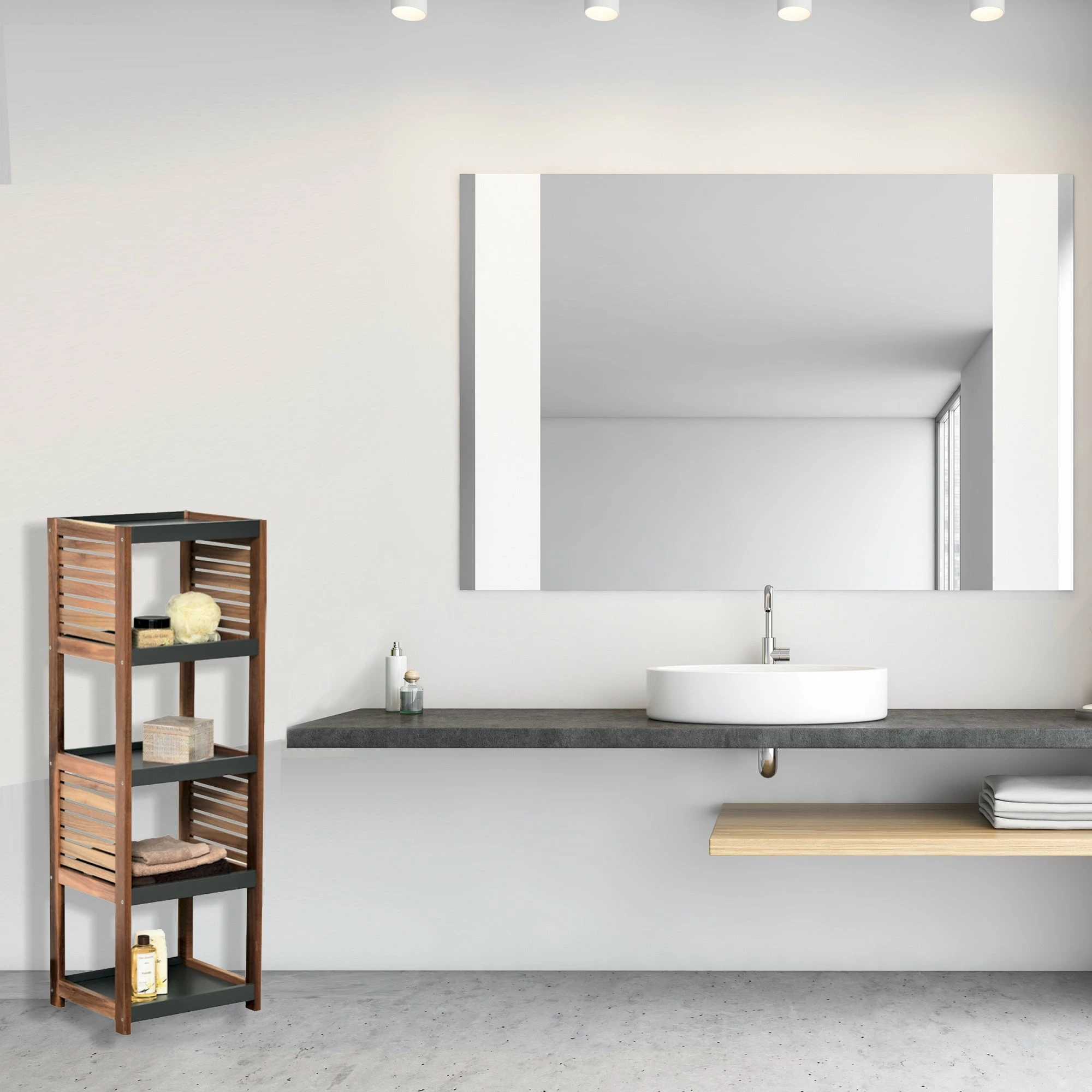 In small-size bathrooms or even in any bathroom, no space should go to waste. This Bathroom Linen Storage Floor Cabinet Elements Acacia – Gray Wood is the perfect storage solution. Keep a perfectly organized bathroom and make the best use of limited space with this attractive bathroom furniture. This linen cabinet features a top tray, two storage alcoves and a closed cabinet, with 1 adjustable inside shelf (3 heights available). Thus, it offers plenty of space for all your bathroom accessories. The louvered door ensures a good air flow and is magnetized to stay securely closed. Moreover, this freestanding cabinet is ideal for keeping your toiletries right at your fingerprints without sacrificing valuable floor space. Not only perfect to display decorative items or to store towels, Knick knacks and toilet paper rolls. But also ideal as a storage option that is easy to relocate. Indeed, it’s typically designed to slide against a wall, or to tuck neatly inside a corner. To sum up, this freestanding bathroom storage cabinet Elements provides an elegant and modern look to any bathroom. Finally, complete your decoration with other products of the same collection Elements. In addition to your cabinet, you can add under sink, floor or over-the-toilet cabinets, toilet paper reserve or tower unit.