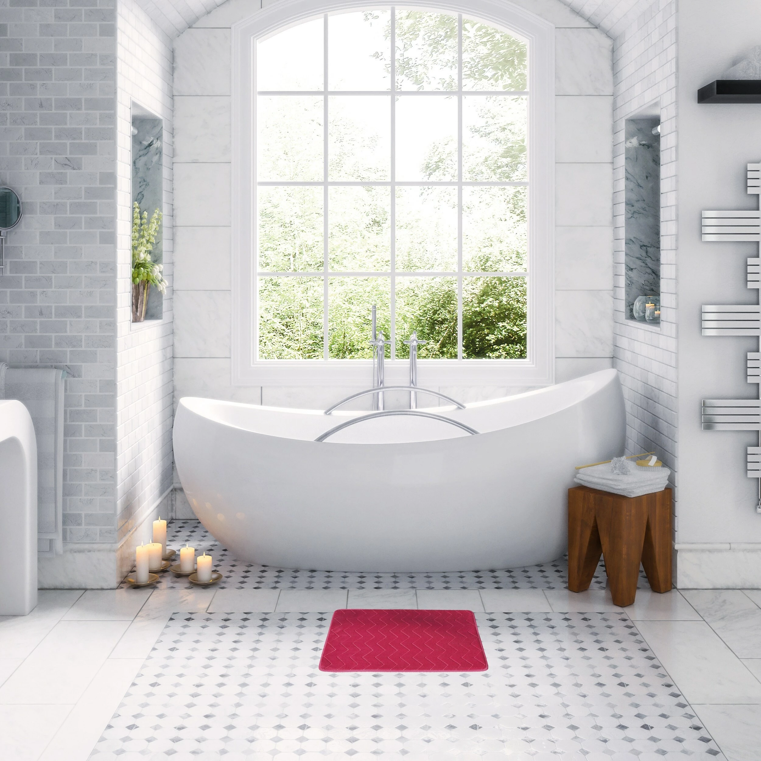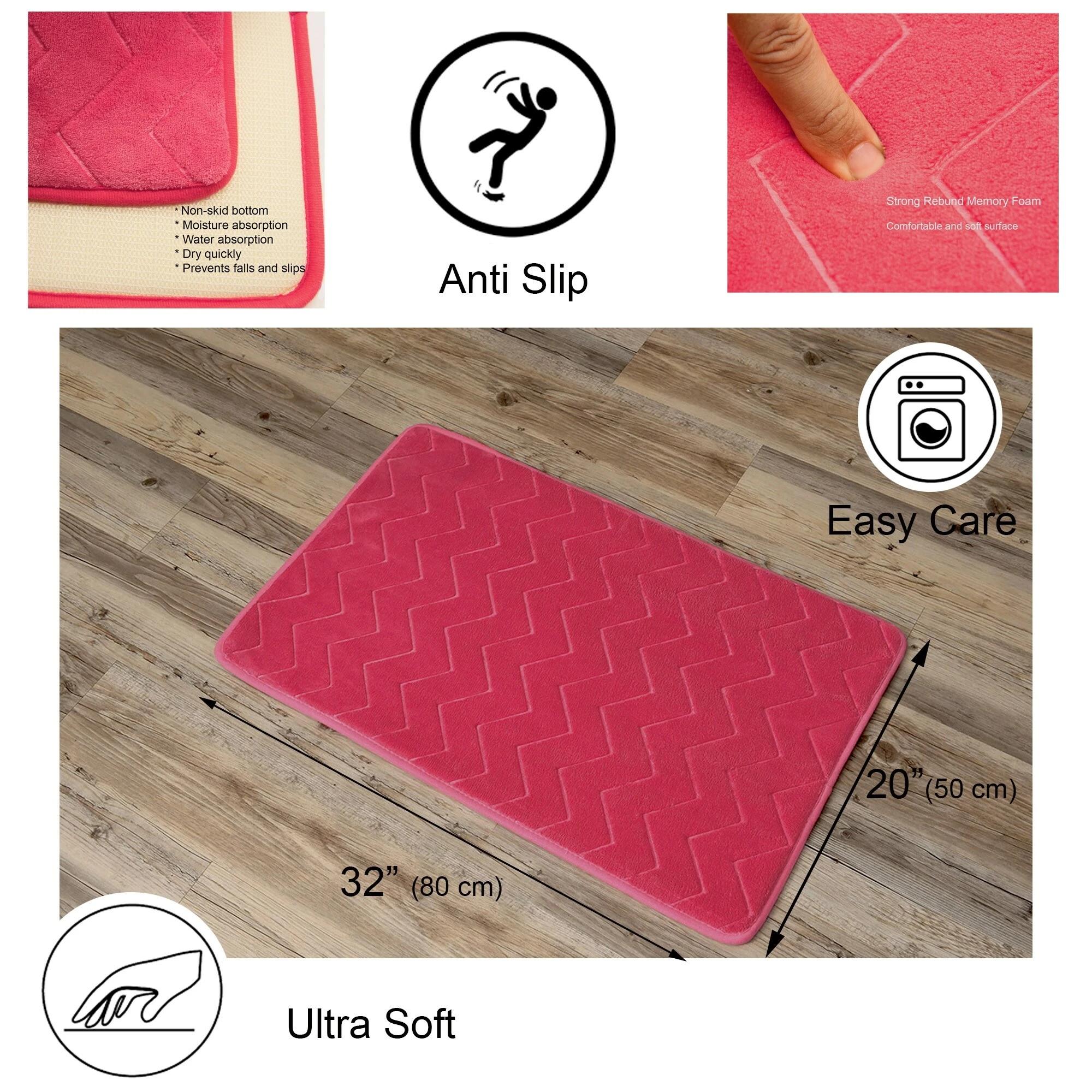 - DESIGN: This unique 3D chevron shaped pink mat will bring a stylish touch to any interior. Ideal for the bathroom, it also fits perfectly anywhere in your home: kitchen, bedroom, living room, laundry room and office. Dimensions 32″L x 20″W