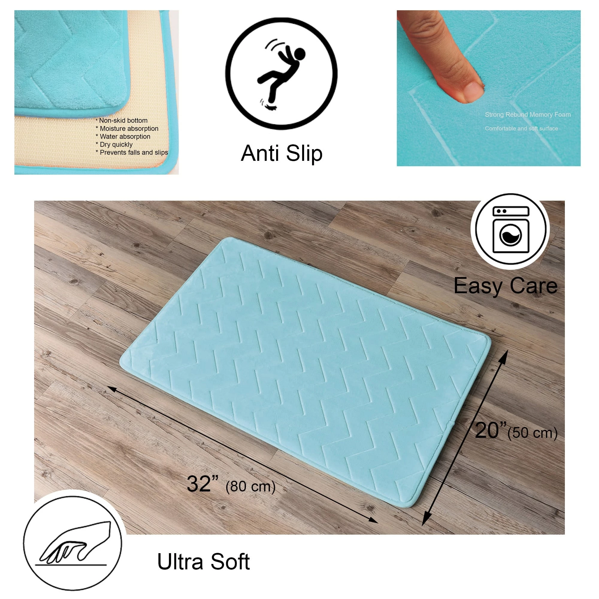- NON-SLIP BACKING: This bathroom mat features a non-skid surface on the back to stay in place and prevent falls