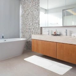 Undoubtedly, bath mats and bath rugs are essential pieces of your home’s soft furnishing. Clearly, they soak up the drip, drop, and spills after baths and other bathroom activities thus preventing slipping. This bath rug runner mat microfiber helps in keeping your bathroom dry as well as squeaky clean. Β First, you can use a runner rug in front of a bath or double vanity, or if you have an elongated bathroom design. In addition, you can use smaller rectangular mats for smaller spaces in front of the shower or small sink. Β Secondly, bathroom floor linen makes your living space cozy and adds texture to your home dΓ©cor. Evideco has a wide range of rugs and mats for your bathroom. Pick from bath mats and bath rugs in a variety of shapes, patterns, colors and materials. Choose from bath rug runners, shower mats, bathtub mats or contour toilet mats for your browsing pleasure. Β Browse from bathroom rugs and mats, and choose your material. From mats made of cotton -feel soft and machine washable to plastic (PVC or PP). Or else, safe and secure non skids shower mats, microfiber-highly absorbent and quick-drying or bamboo- rustic style. Additionally, safeguard your little ones and yourself from slippery floors by picking mats that have a non-skid surface. Β Finally, this bath rug runner mat microfiber is great for bathroom, vanity, vacation home, master bathroom, kids bathroom or guest suite. Β In conclusion, a bath rug is a great addition to your bathroom but also both functional and aesthetic.”