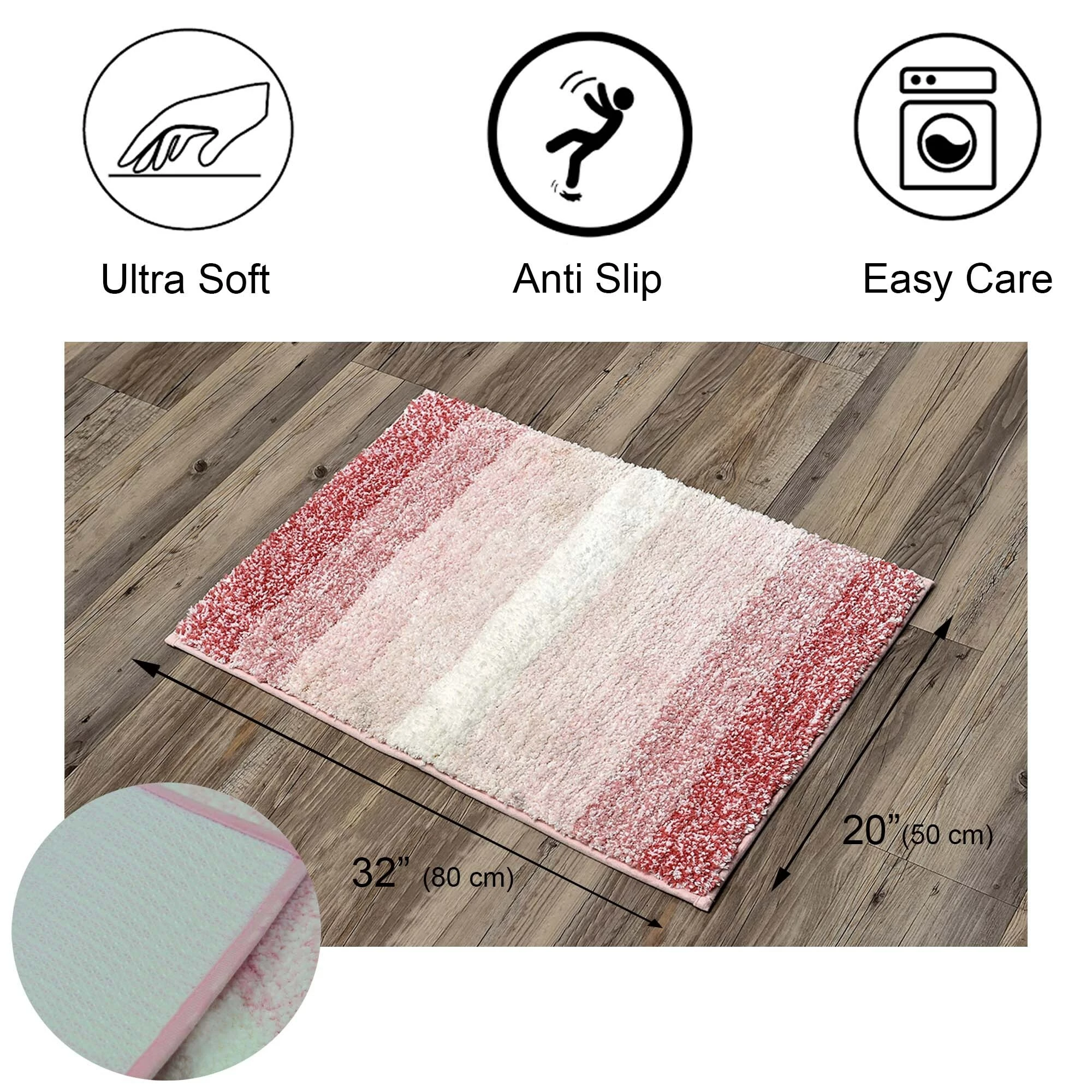 - NON-SLIP BACKING: This bathroom mat features a non-skid latex surface on the back to stay in place and prevent falls