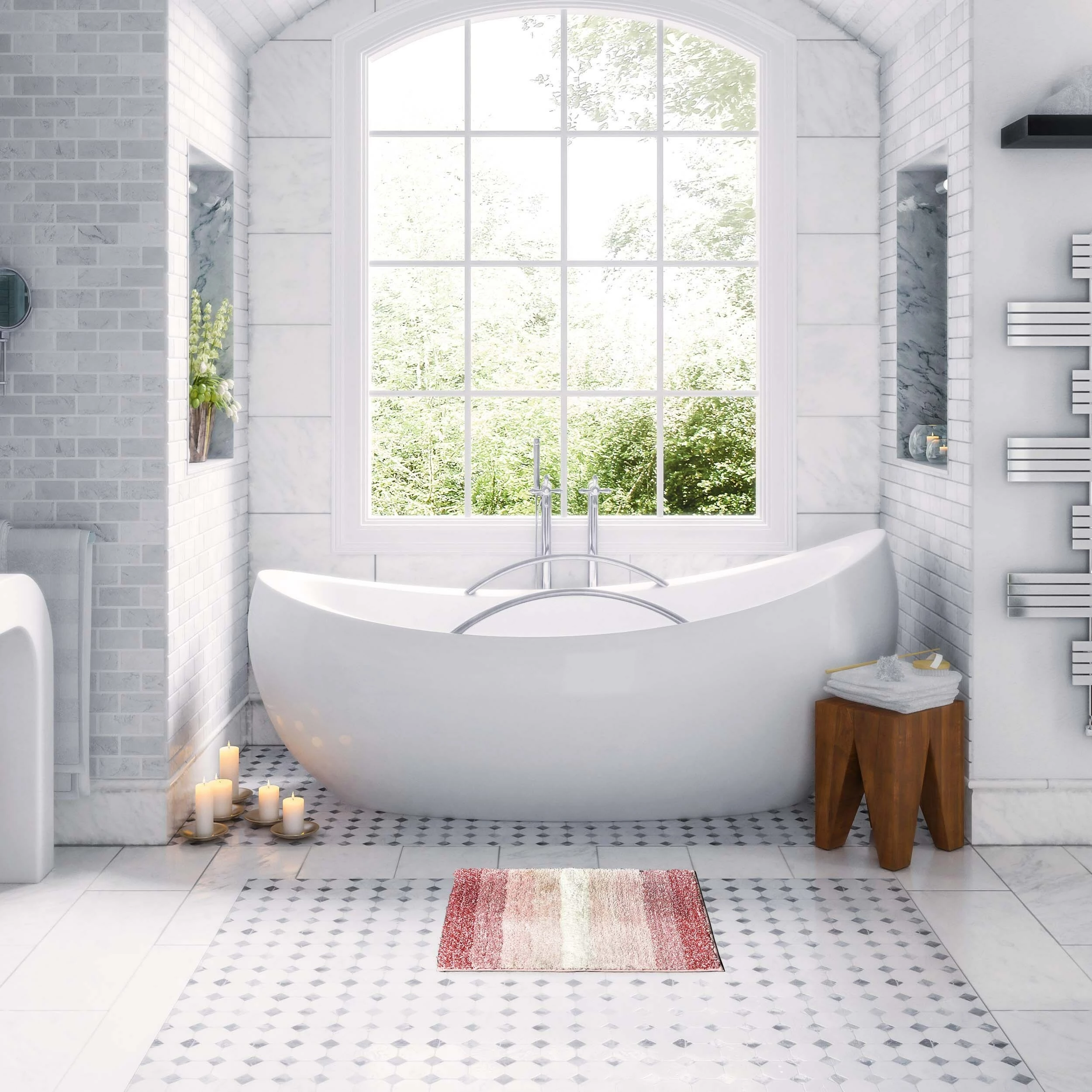 - EASY CLEANING: Made in 100% polyester, this bathroom rug is easy to care. Machine washable up to 90 F max with mild detergent. Do not use dryer, bleach or iron. Designed in France, manufactured in China