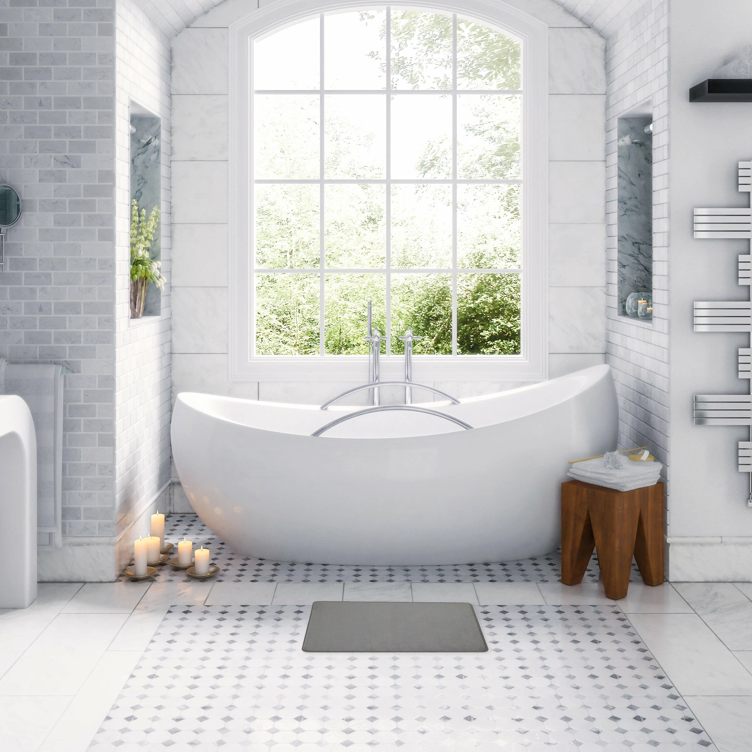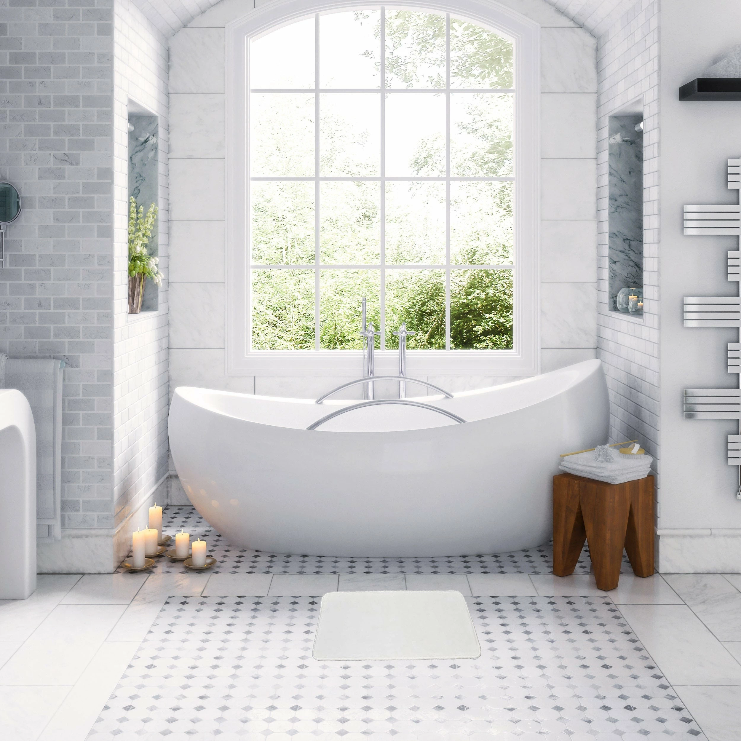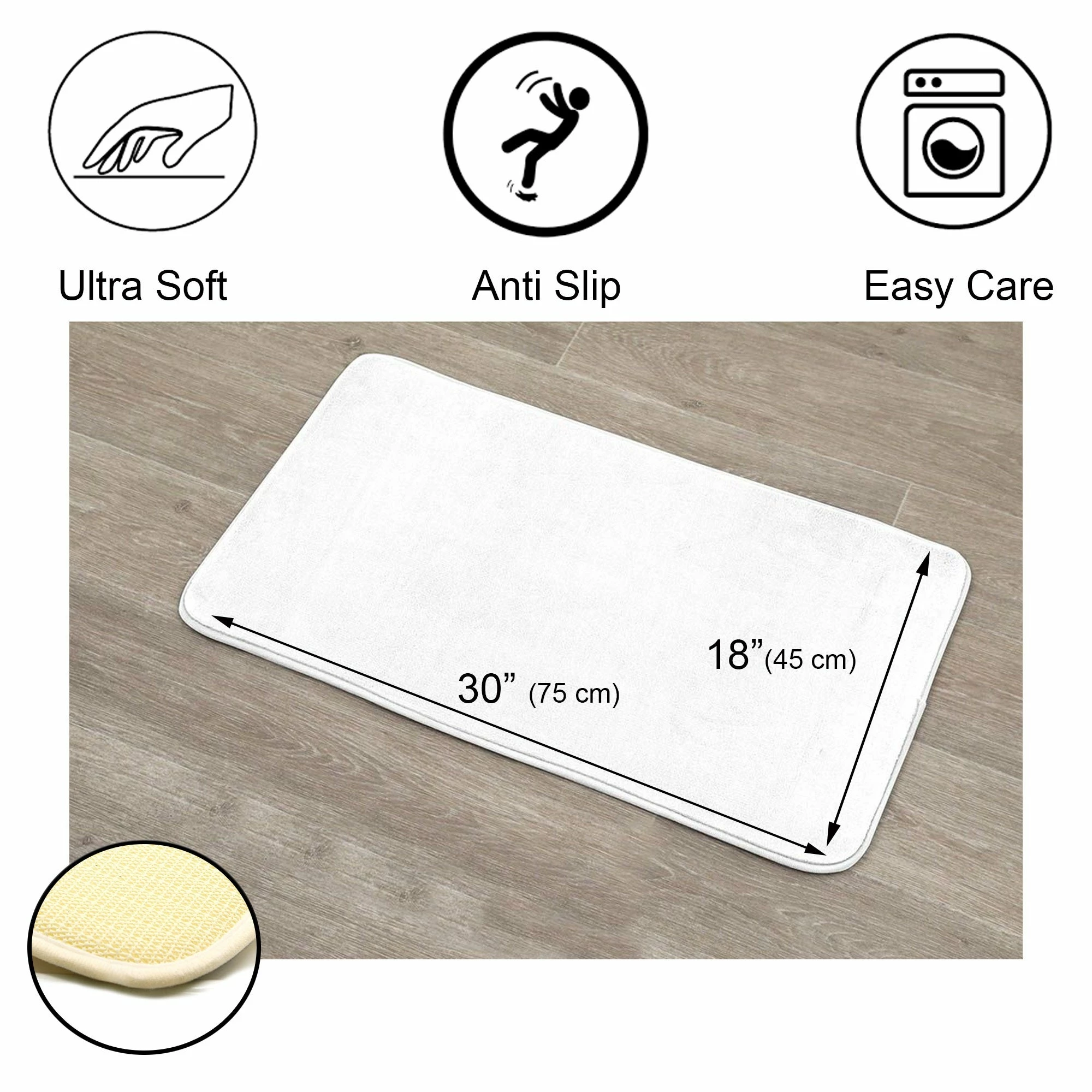 - DESIGN: With ease, this solid white color mat will bring an elegant touch to your interior. Ideal for the bathroom, it also fits perfectly anywhere in your home: kitchen, bedroom, living room, laundry room and office. Dimensions 30″L x 18″W