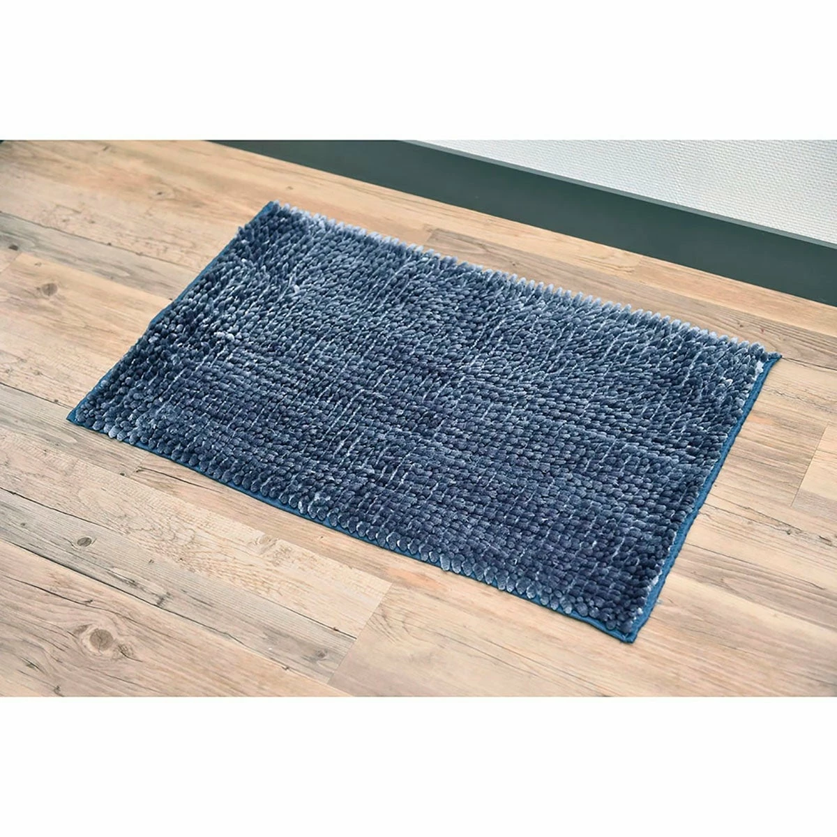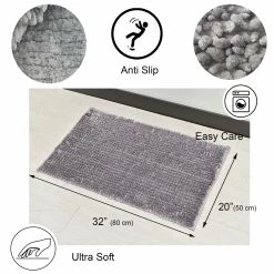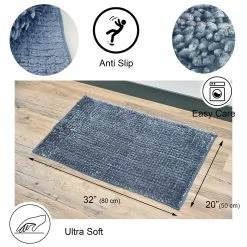 - DESIGN: With its beautiful satin chenille fibers, this blue grey mat will bring a stylish touch to any interior. Ideal for the bathroom, it also fits perfectly anywhere in your home: kitchen, bedroom, living room and office. Dimensions 32″L x 20″W