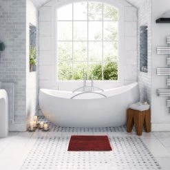 Bath mats and bath rugs are essential pieces of your homeβs soft furnishing. They soak up the drip, drop, and spills after baths and other bathroom activities thus preventing slipping. They help in keeping your bathroom dry and squeaky clean. Bathroom floor linen makes your living space cozy and adds texture to your home decor. Evideco has a wide range of rugs and mats for your bathroom. Pick from bath mats and bath rugs in a variety of shapes, sizes, and materials. Choose from bath runners, shower mats, bathtub mats, bamboo slat mats, contour toilet mats, memory foam mats, for your browsing pleasure. Browse from bathroom rugs and mats, and choose your material: cotton -feel soft and machine washable, plastic (PVC or PP)-safe and secure non skids shower mats, microfiber-highly absorbent and quick-drying, bamboo- rustic style. Safeguard your little ones and yourself from slippery floors by picking mats that have a non-skid surface. Look through a wide range of colors and patterns. A bath rug is a great addition to your bathroom and is both functional and aesthetic.