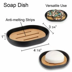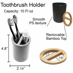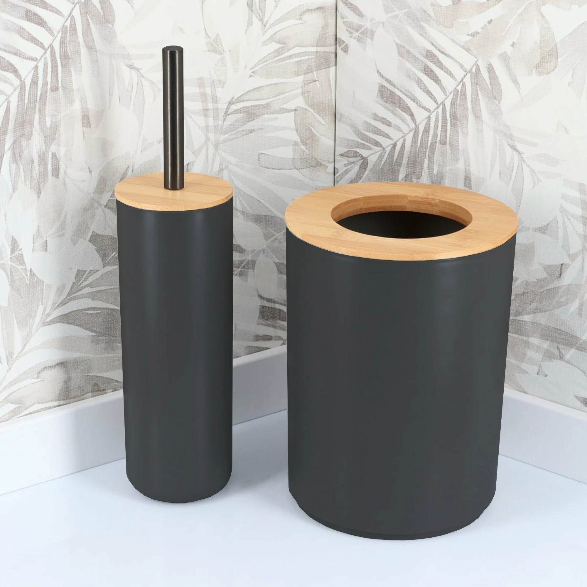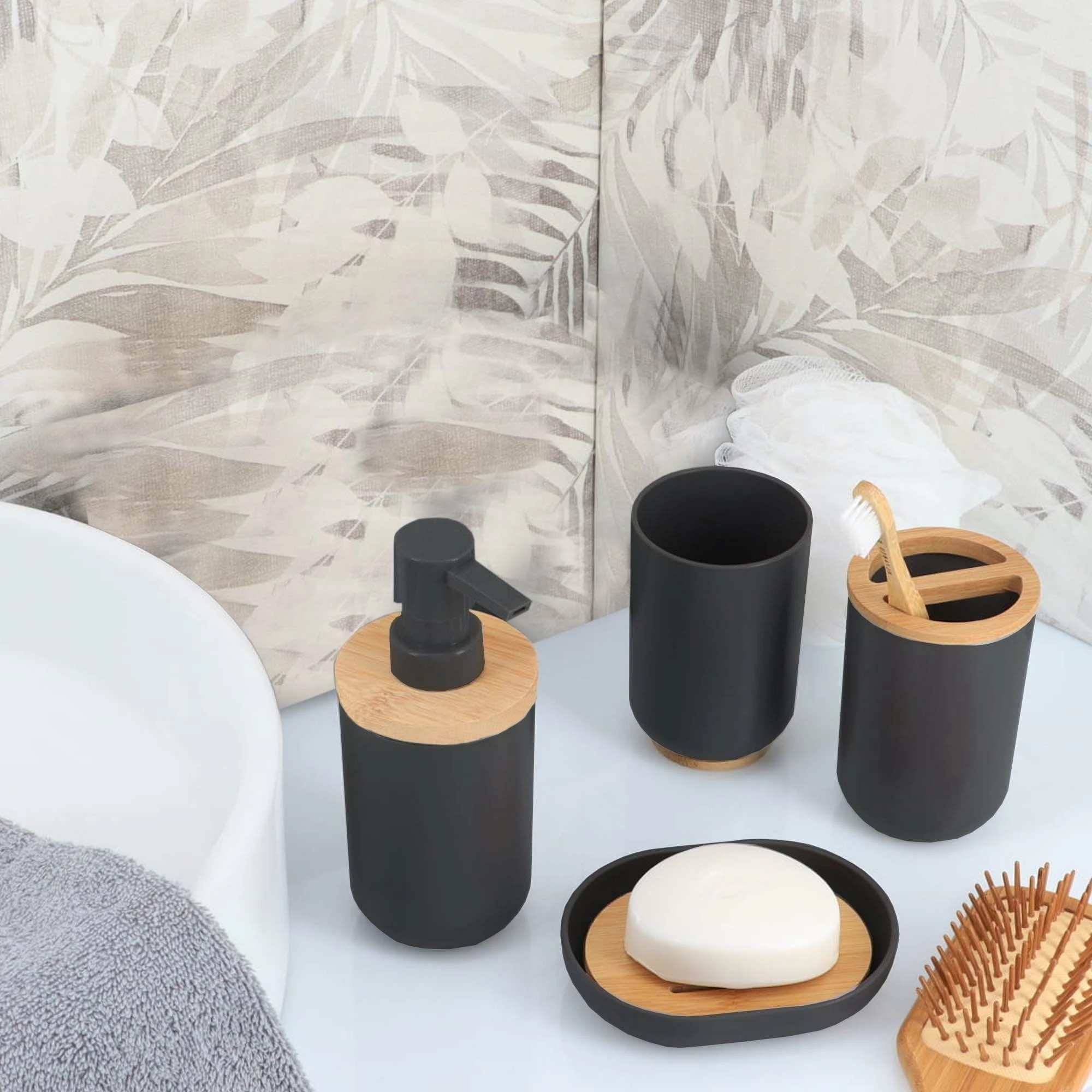 - NATURAL DESIGN : The color combination of black and bamboo of this bathroom set PADANG will blow a natural wind to your home dΓ©cor. These bath accessories offer a coordinated and stylish way to conveniently house bathroom necessities