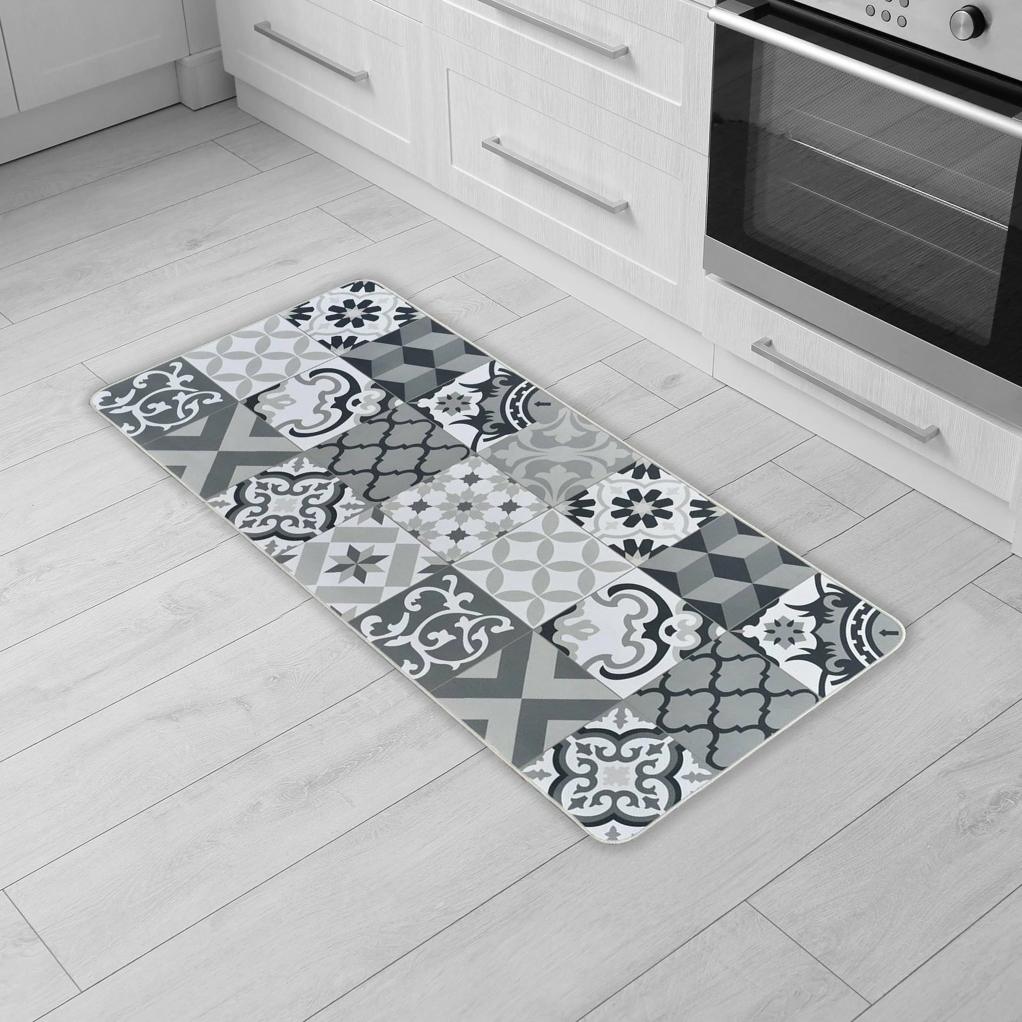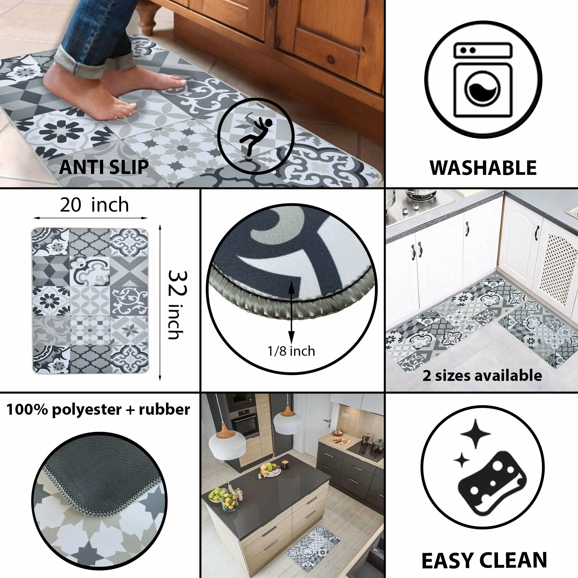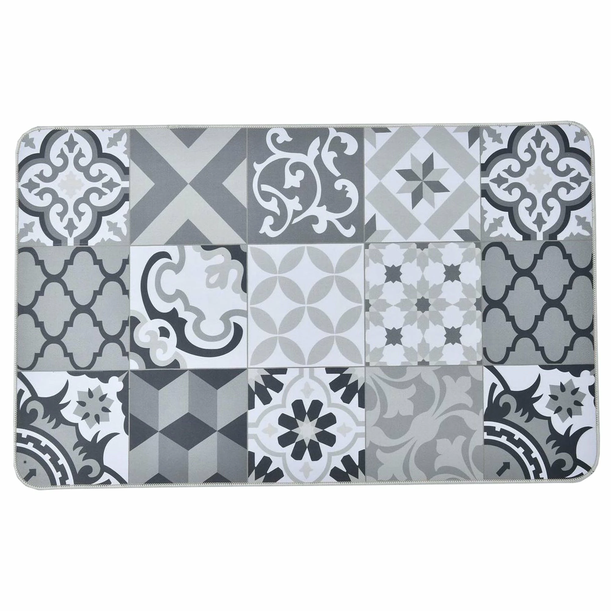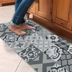 This sink mat is characterized by its particularly fashionable ceramic tile pattern. Its deep grey color on white background will allow it to associate with many shades of colors, provided that the vintage retro is at the rendezvous! These top tile flooring trends will have your floor looking great anywhere, especially in kitchens, bathrooms, and other water-prone areas. This sink mat provides ample support for people’s foot over long periods of standing. Take advantage of our absorbent polyester coating mat and do not worry anymore about staining your floor. Machine washable, you can also wipe clean it with a damp cloth or sponge. Also suitable as standing desk mat, office mat, doormat, bedroom rug, bathroom rug mat or kid’s room rug