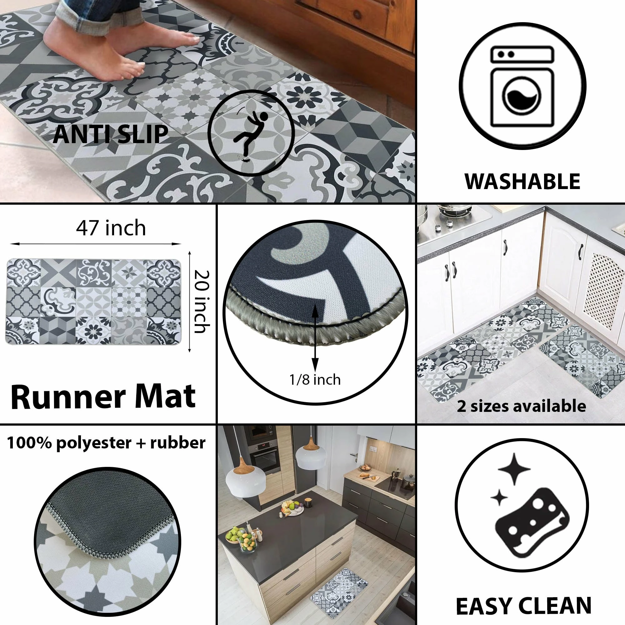 - MACHINE WASHABLE: Perfect for high traffic areas, enjoy its stain-resistant features and no longer fear the fall of utensils or sauces on the floor of your kitchen. Our washable kitchen rugs are easy to maintain on a daily basis