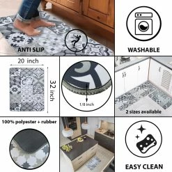 - ANTI-SLIP BACKING: With 1/8″ of thickness and a rubber backing, this non skid kitchen floor mat will stay in place and will prevent you or your family from falling
