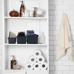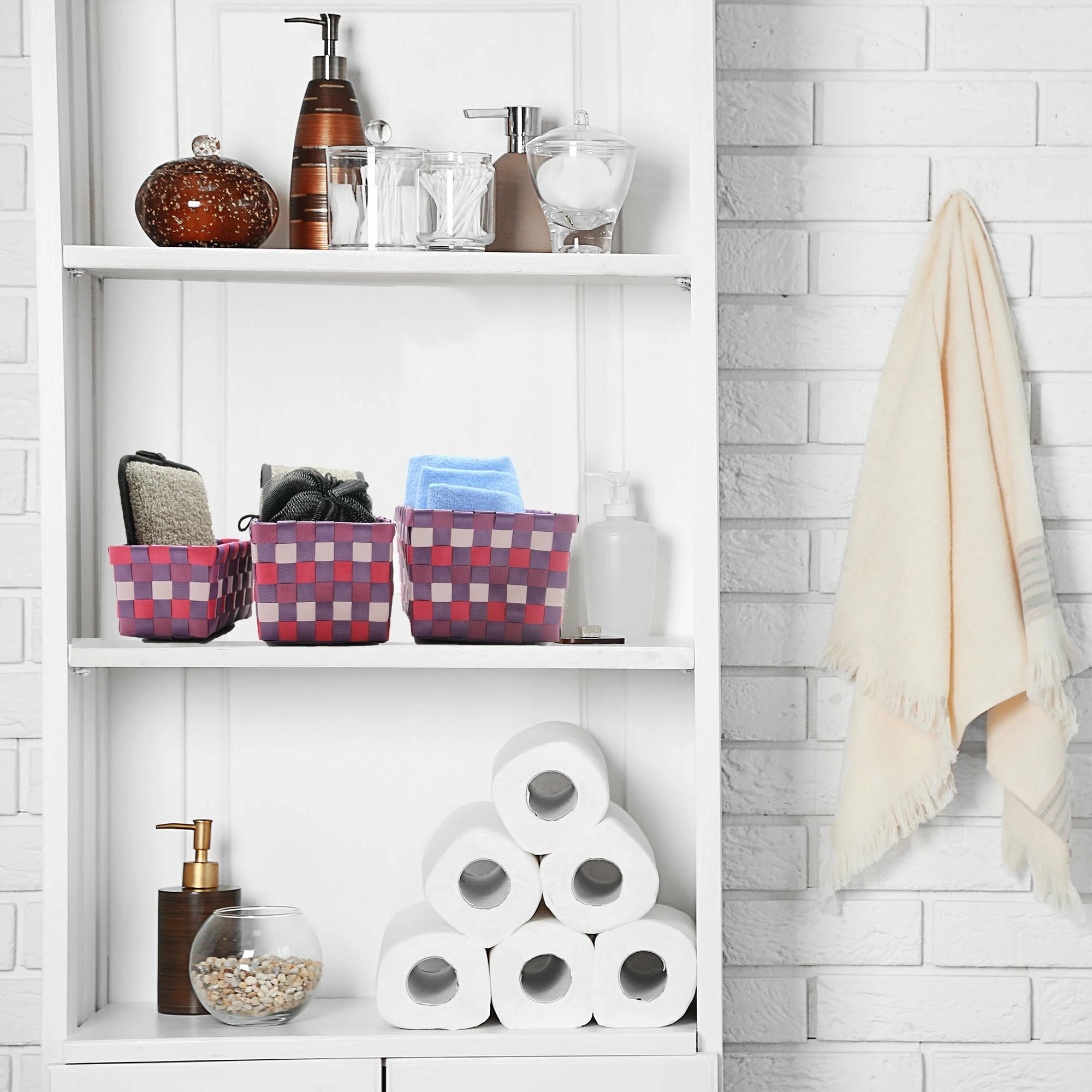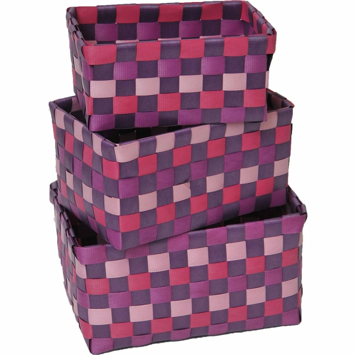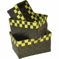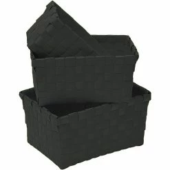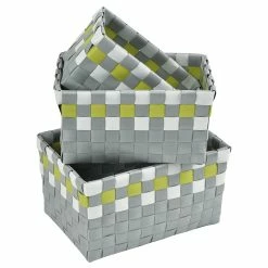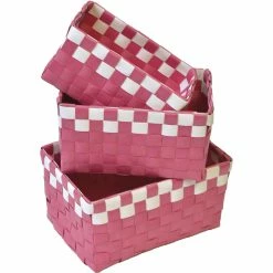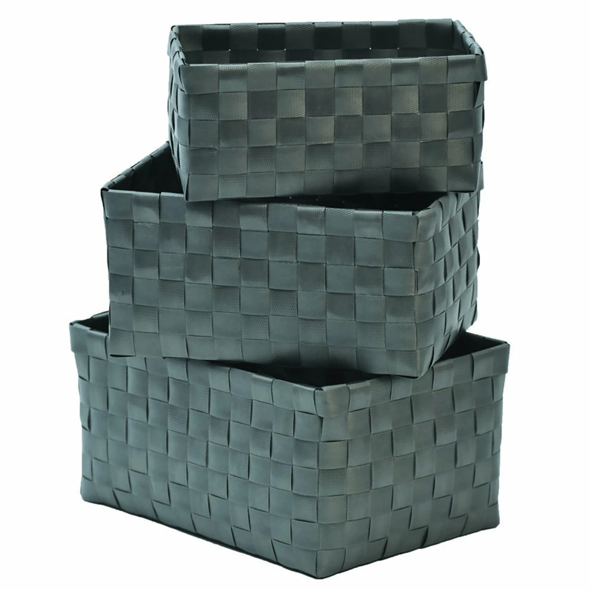 Easily organize any room in your home with this set of stackable storage baskets. The woven polypropylene baskets are reinforced with stainless steel frames for durability. The set of three is available in 14 versatile colors to complement your unique decor.