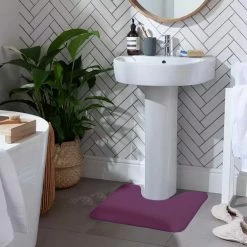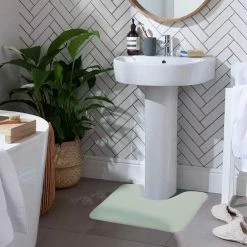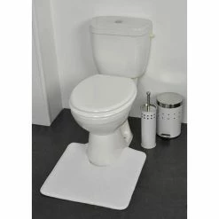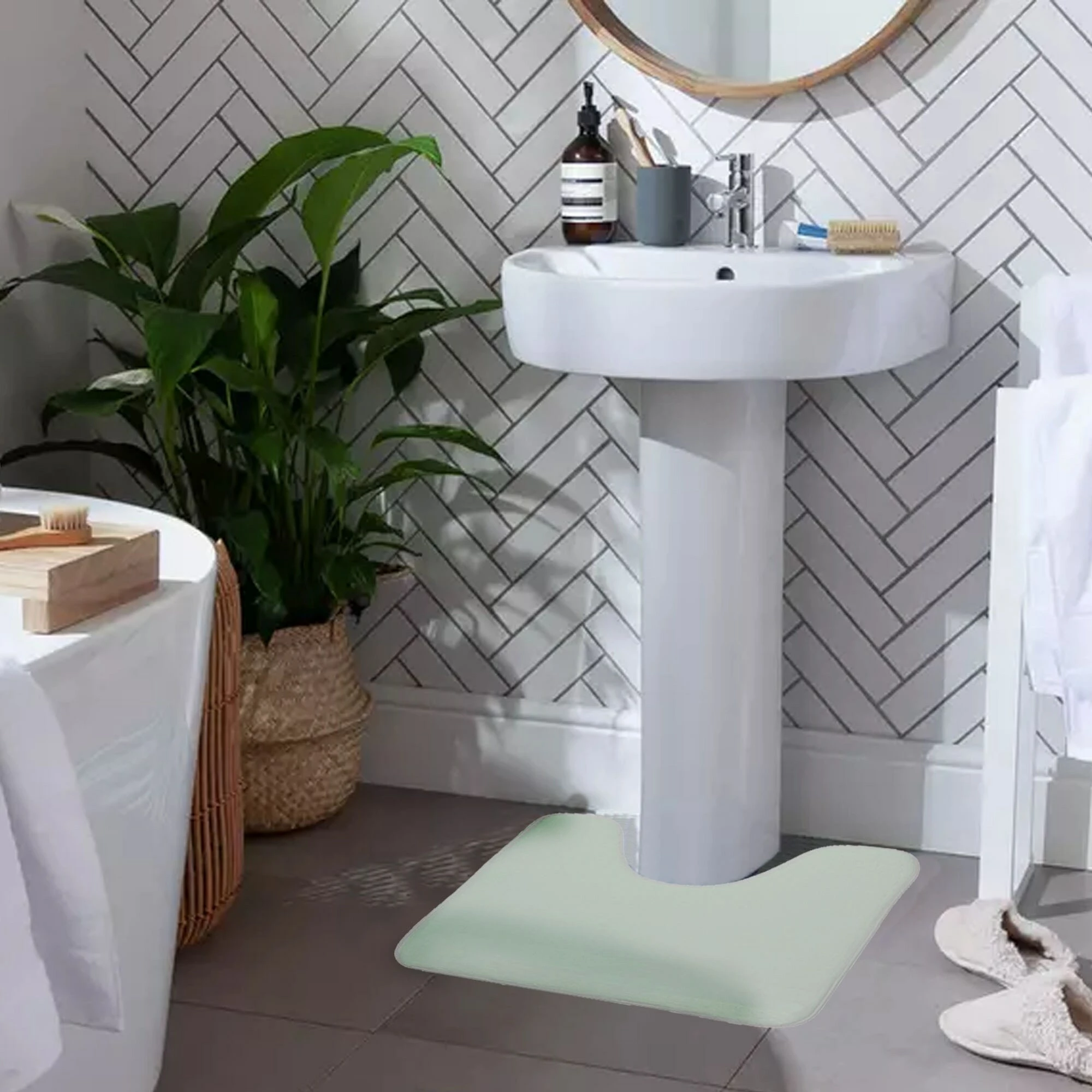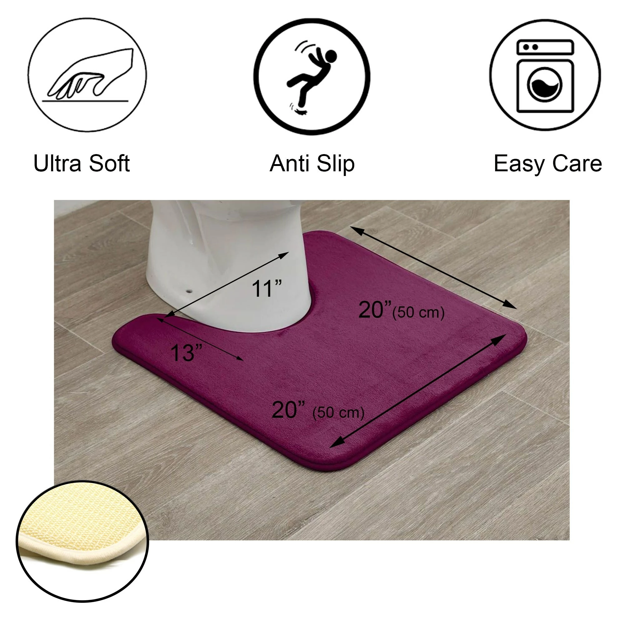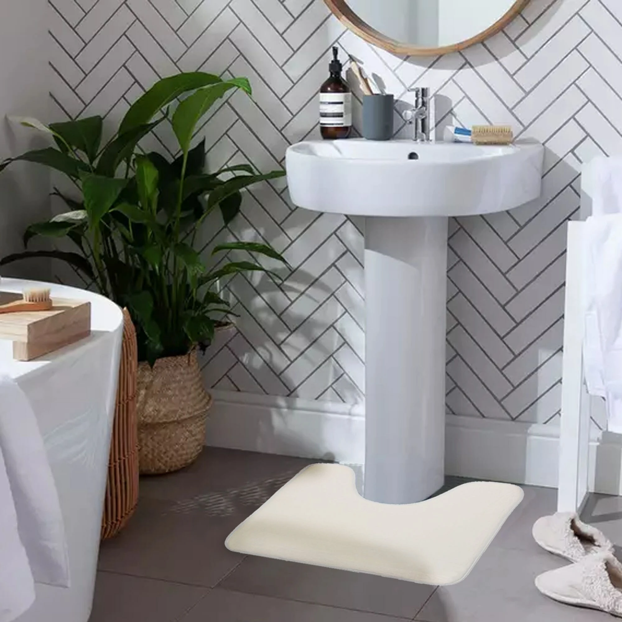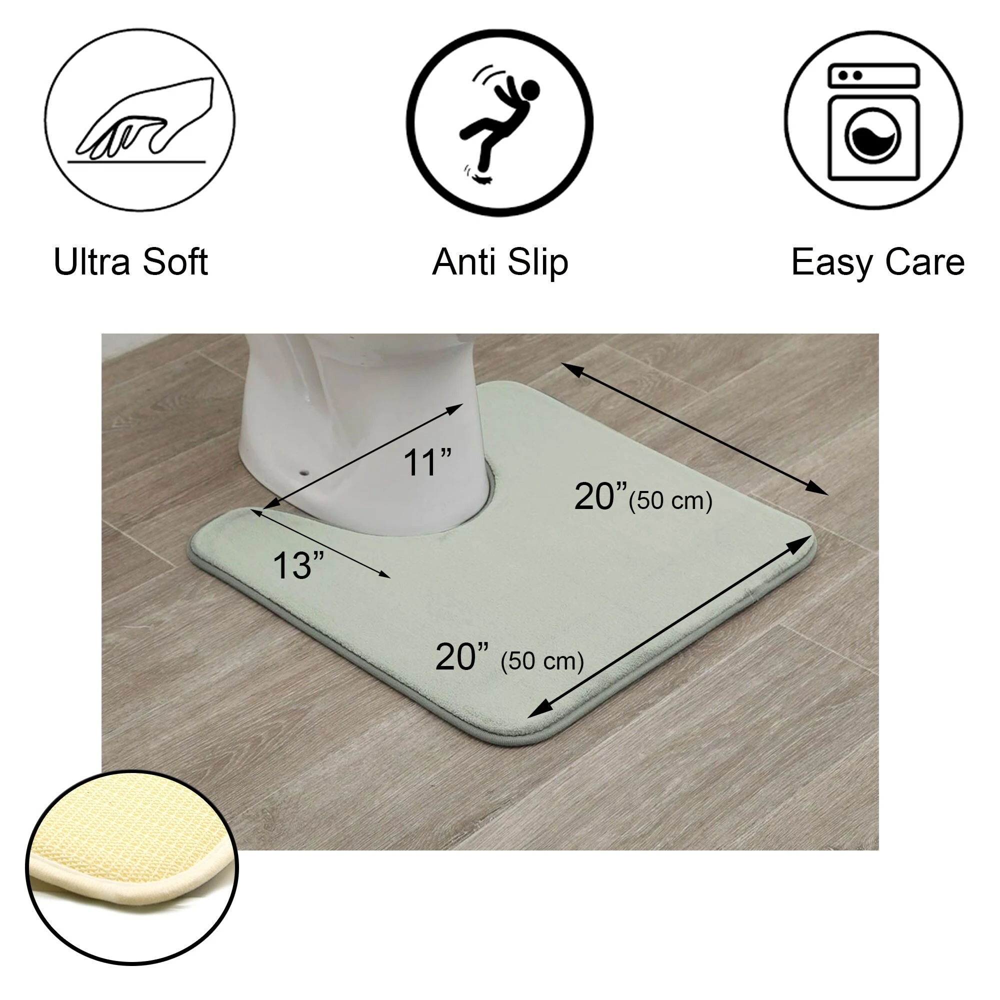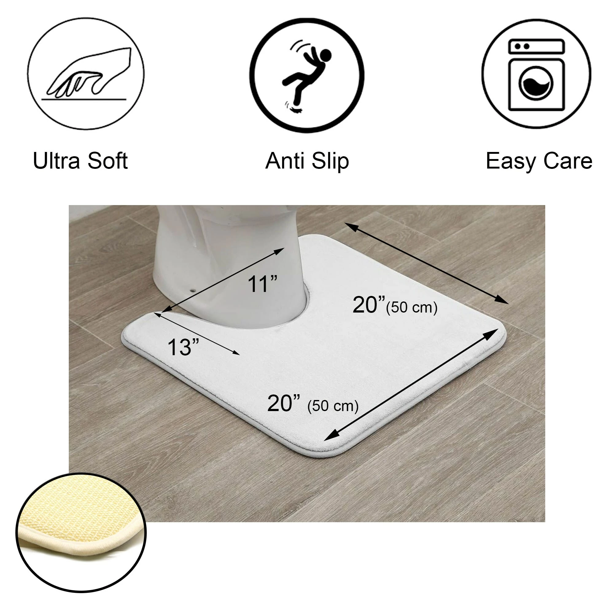- DESIGN: With ease, this solid white color contour bath mat will bring an elegant touch to your bathroom. U-shaped, it will fit to any toilet with its dimensions 20″L x 20″W. Suitable for pedestal sink