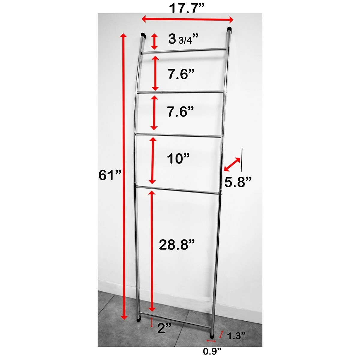 - SPACE SAVING RACK : this clever metal ladder design makes it easy to lean against any wall to maximize storage in tight spaces, while also offering mobility for use throughout your house. Large storage capacity with dimensions of 61 H x 17.7 W x 5.8 D (distance from the wall)- approximately 150 H x 44 W x 10.5 cm. 2 colors available : white or chrome-plated