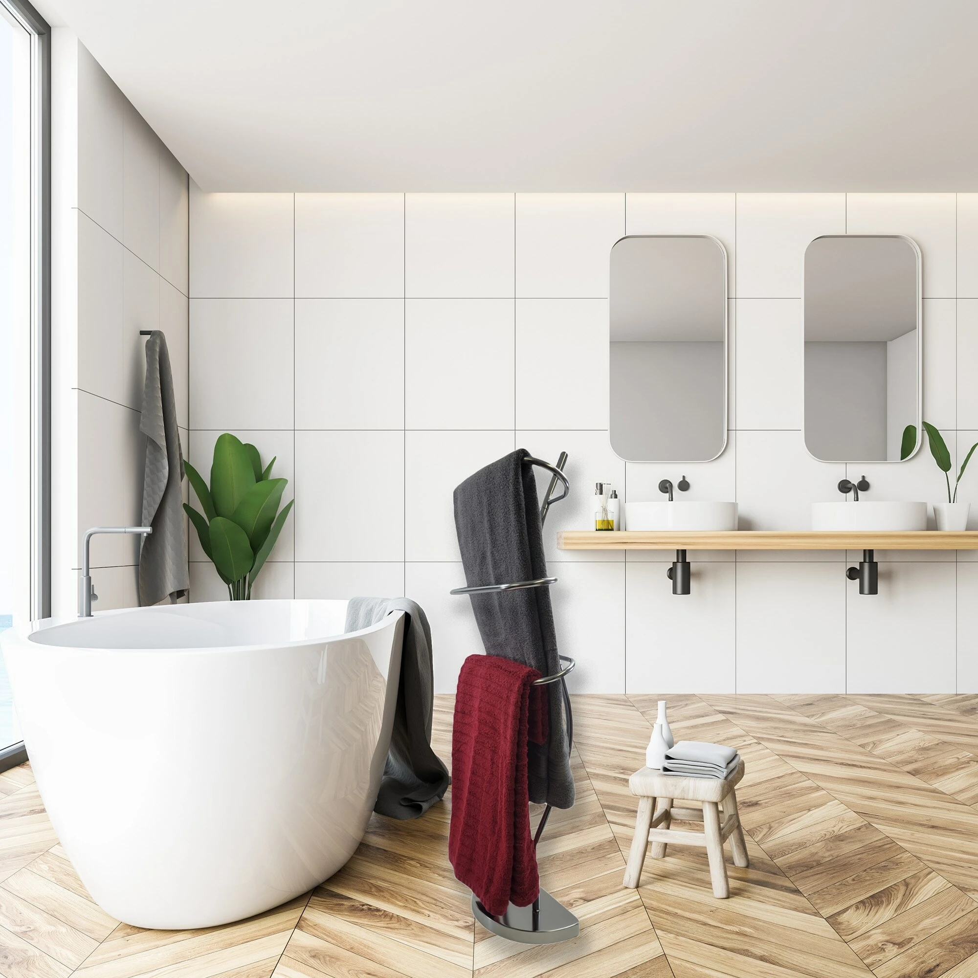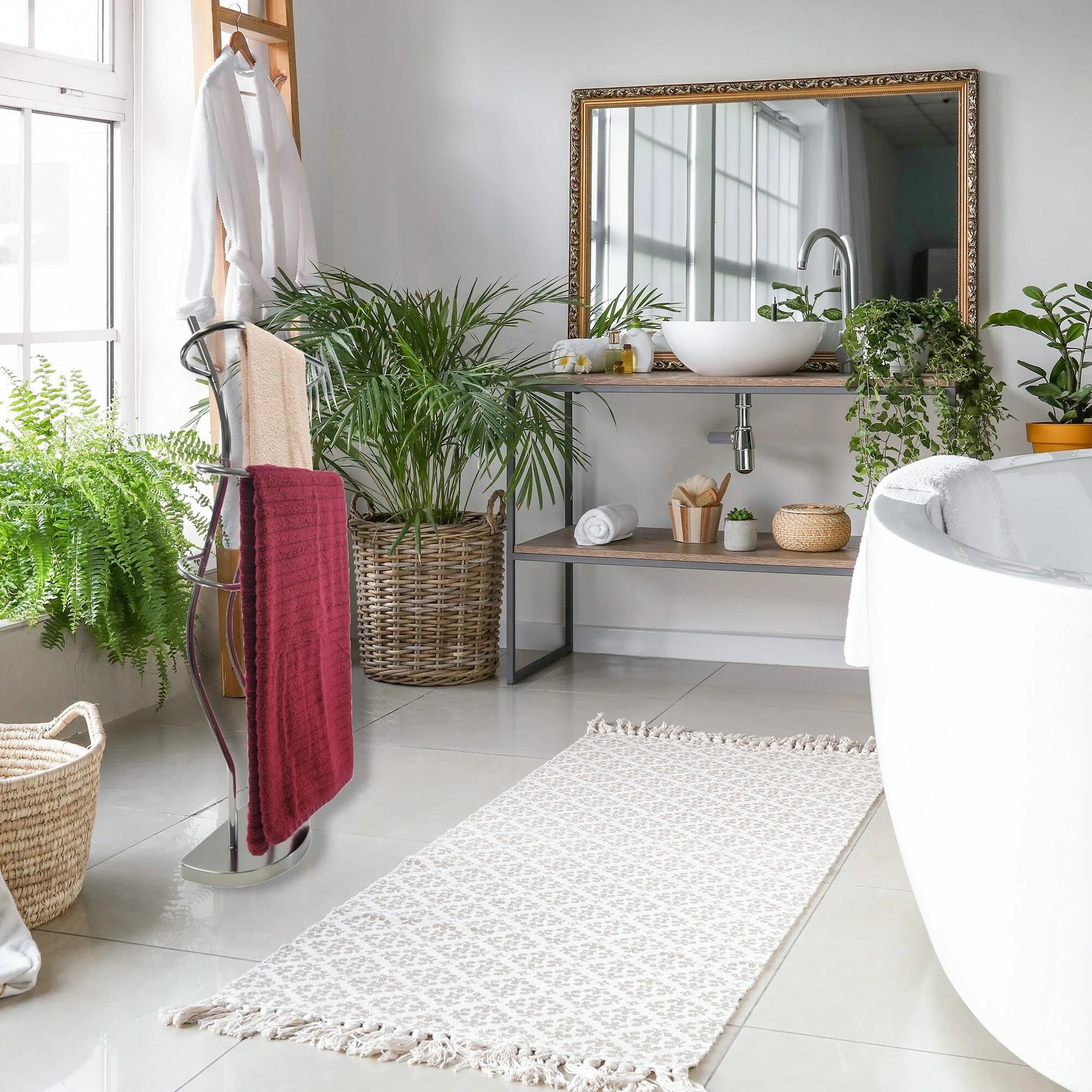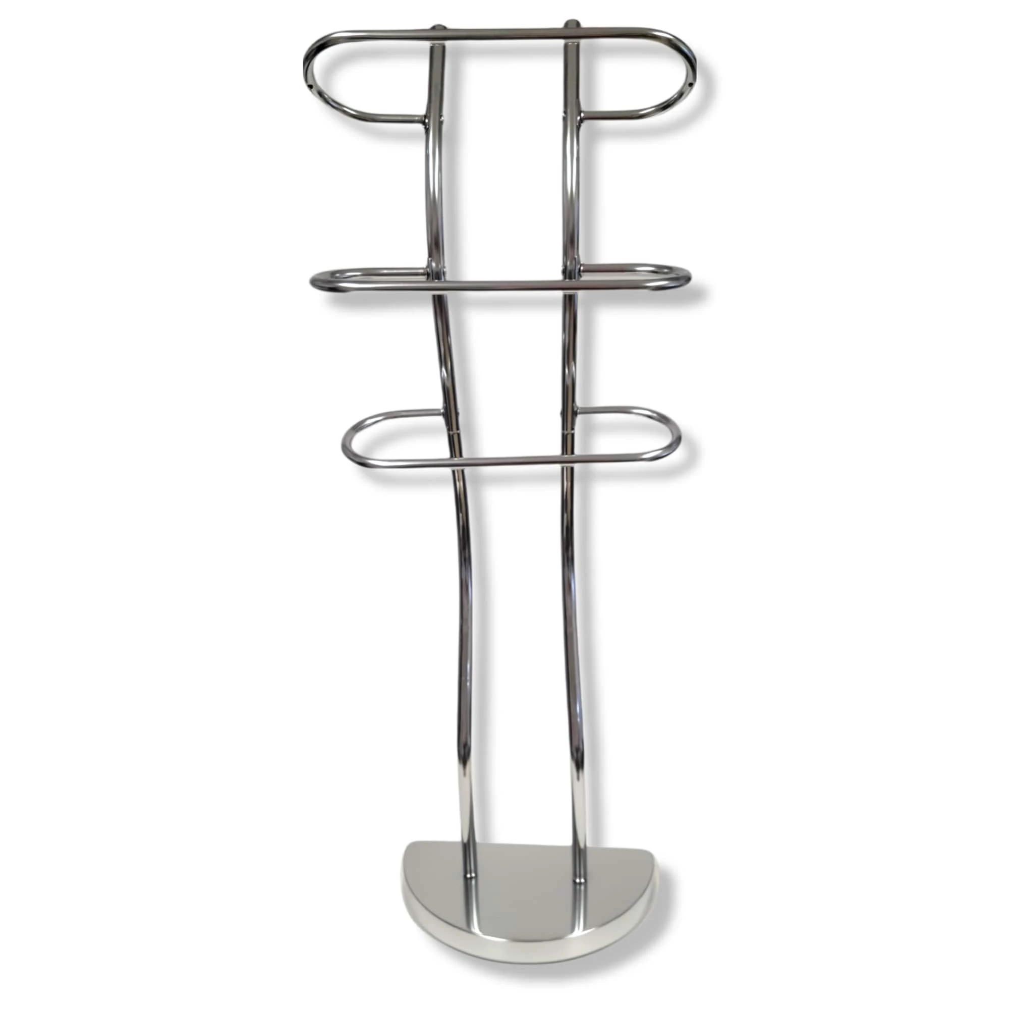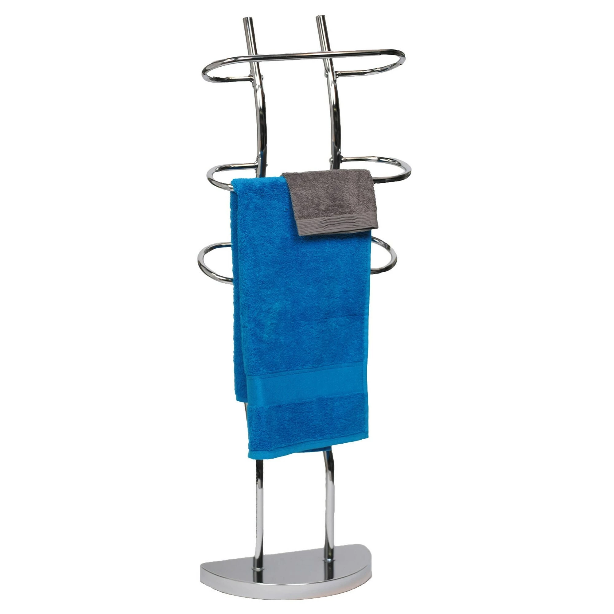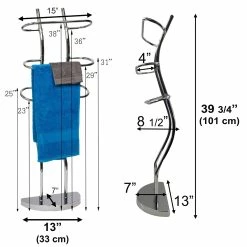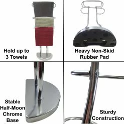 - 3 TOWELS HOLDER : This freestanding towel holder features three chrome plated finish metal bars to keep your favorite hand or beach towels neatly displayed. Tiered and curved design offers great airflow for faster drying, no more damp towels