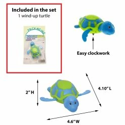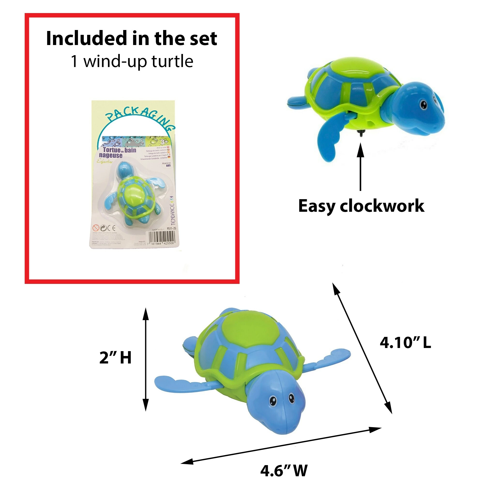 - WIND-UP TURTLE: With dimensions of 4.10″ L x 4.6″ W x 2″ H, this blue and green swimmer turtle is easy to use. Turn the clockwork and let it go in the water!