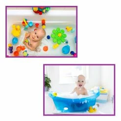 This 6-pieces bath toys set for children includes a varied assortment of toys, playful and colorful, and a storage bag. Ideal for the development of the little ones and perfect to keep the bathroom impeccable! Whether it is rubber ducks making noise, animals spraying water or even a turtle swimming by itself, all encourage children’s creativity and imagination. The bath then becomes the children’s favorite play time. Definitely, this set of bath toys for kids develops psychological and physical skills. Perseverance, patience, hand-eye coordination and dexterity will be boosted. Moreover, playing with toys of different shapes and sizes offer interactive fun. Specially for aquatic use, our child bath toys set is mainly 100% PVC (with the exception of the swimmer turtle made in ABS). Designed in France, made in China. They will last for years. This set of children’s aquatic toys is not for children under 3 years. Risk of suffocation due to small parts. An adult supervision is required. Give this funny kids bath toys set to your loved ones, and they will invent stories and games for hours!