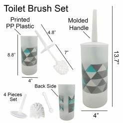 - DESIGNER ARTWORK: With its nice scandinavian geometric design, printed around the cylindrical silhouette of this toilet bowl brush, you will add freshness to your bathroom in seconds. This toilet brush set is the perfect complement to any home