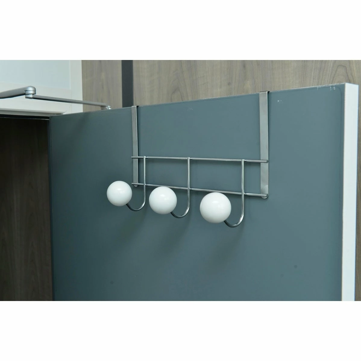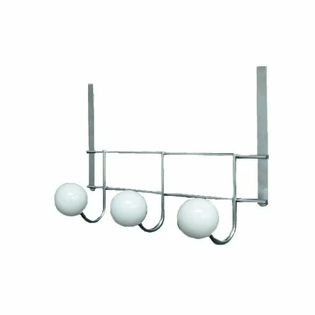 This over the door coat and hat 3 Hooks BIG BALLS Rail Rack is made of durable chromed metal wire. It features 3 resin big balls hooks with a diameter of 1.89 Inch. This will give space for numerous items to be securely hung at a time while occupying minimal wall space. Store your towels, bathrobes, clothes and others accessories by taking advantage of unused space. Color white (balls) and chrome (rail). No drills, no holes, it fits over the top of any standard door up to 1-3/8 thick. Add storage easily to any bathroom, closet or room door in your home. Wipe clean. Imported from France, made in PRC. Length 13.38-Inch, width 3.74-Inch and height 8.26-Inch (34 L x 9.5 W x 21 H cm). This over the door coat and hat 3 Hooks BIG BALLS Rail will help you to create convenient hanging spaces.