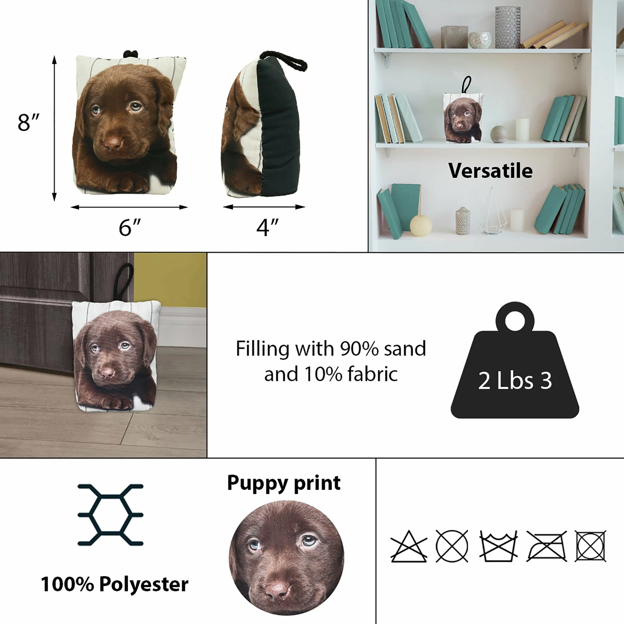 - NICE DESIGN: Featuring a puppy print, this cute doorstop bag will add a lovely touch to your home. Color: brown, gray. Black back