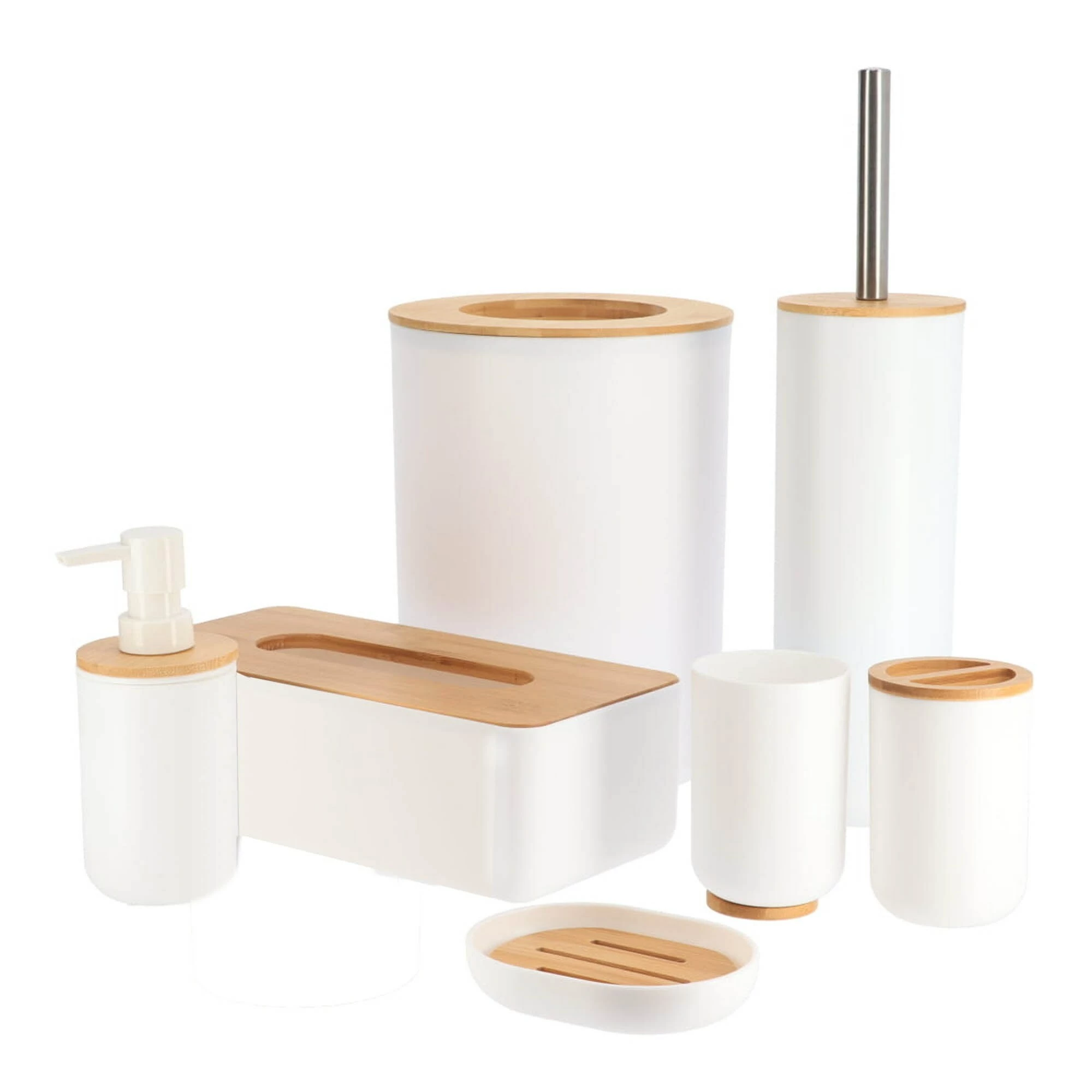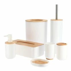 Letβs talk trash. Taking it out is never fun, but a good trash can make the task less of a slog. Keep your home clean with our bathroom trash can PADANG white with bamboo lid. It makes tossing garbage easy, replacing bags painless, and cleaning a cinch. Β Trash cans are modest yet crucial to the smooth functioning of a household. Before, people degraded waste bins for being smelly and dirty. But indeed they add a clean look to any bathroom, kitchen, restroom or office, even under a desk. Β Also known as a dustbin, garbage can, waste basket, our trash cans are made out of metal, PVC or bamboo. Evideco offers various models, like countertop wastebaskets, open top trash cans or pedal bins with soft close lid. Both functional and aesthetic, you can easily choose your style, color and capacity among our collection. Β Since its capacity is 1.3 Gal, itβs best suited to small households or those who take their garbage out frequently. Ideal for those who donβt generate a lot of trash and who need something tucked out of the way. Β You can also complete your decoration with other products of the same PADANG collection. For example, you can add to your selection a matching tumbler, a soap dispenser or a toilet brush.”