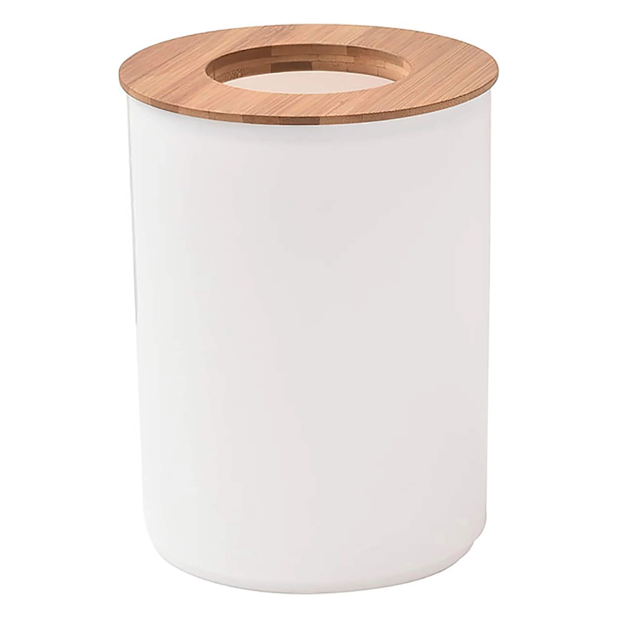 - NATURAL DESIGN : The color combination of white and bamboo of this bathroom trash can PADANG will blow a natural wind to your home dΓ©cor! Also available in white and bamboo