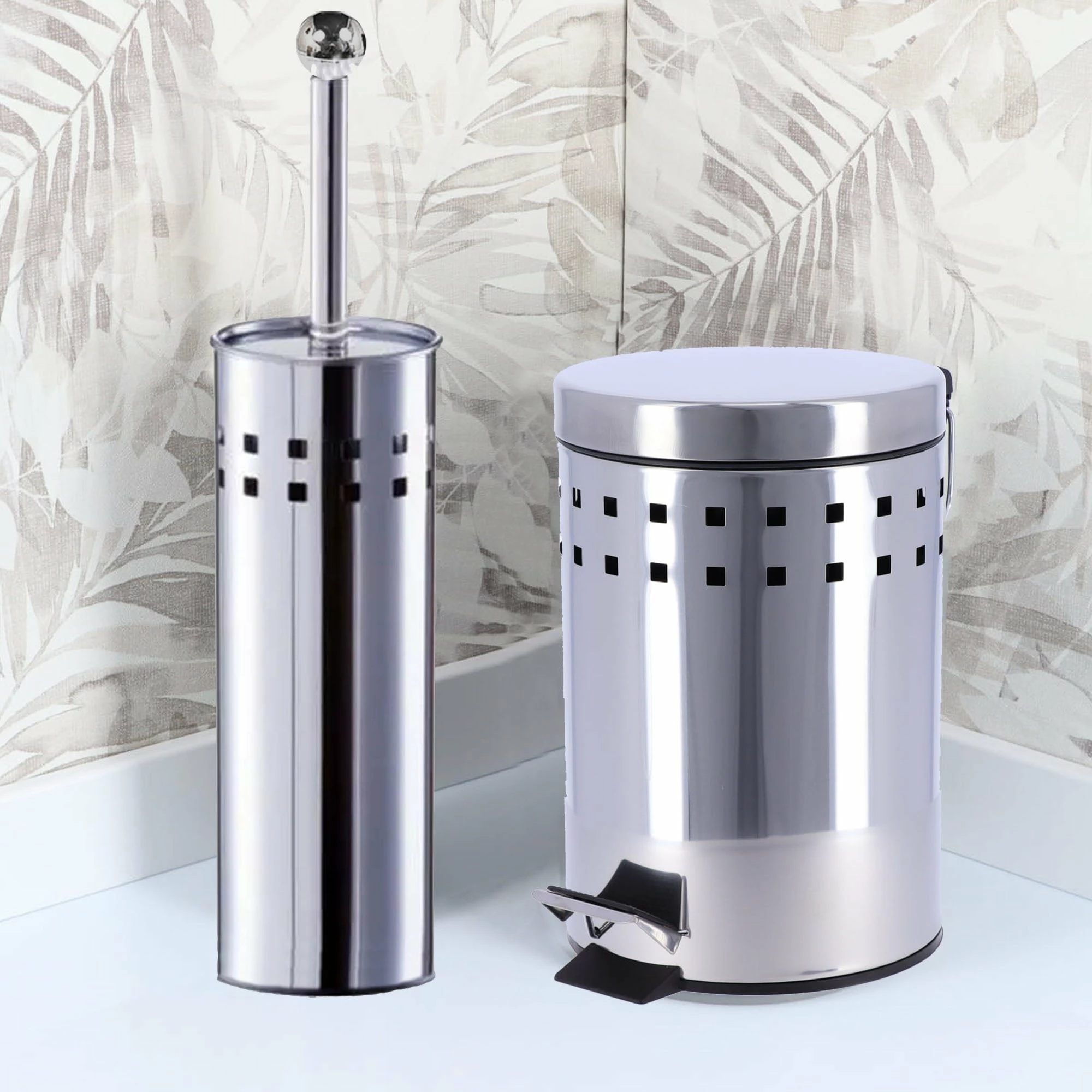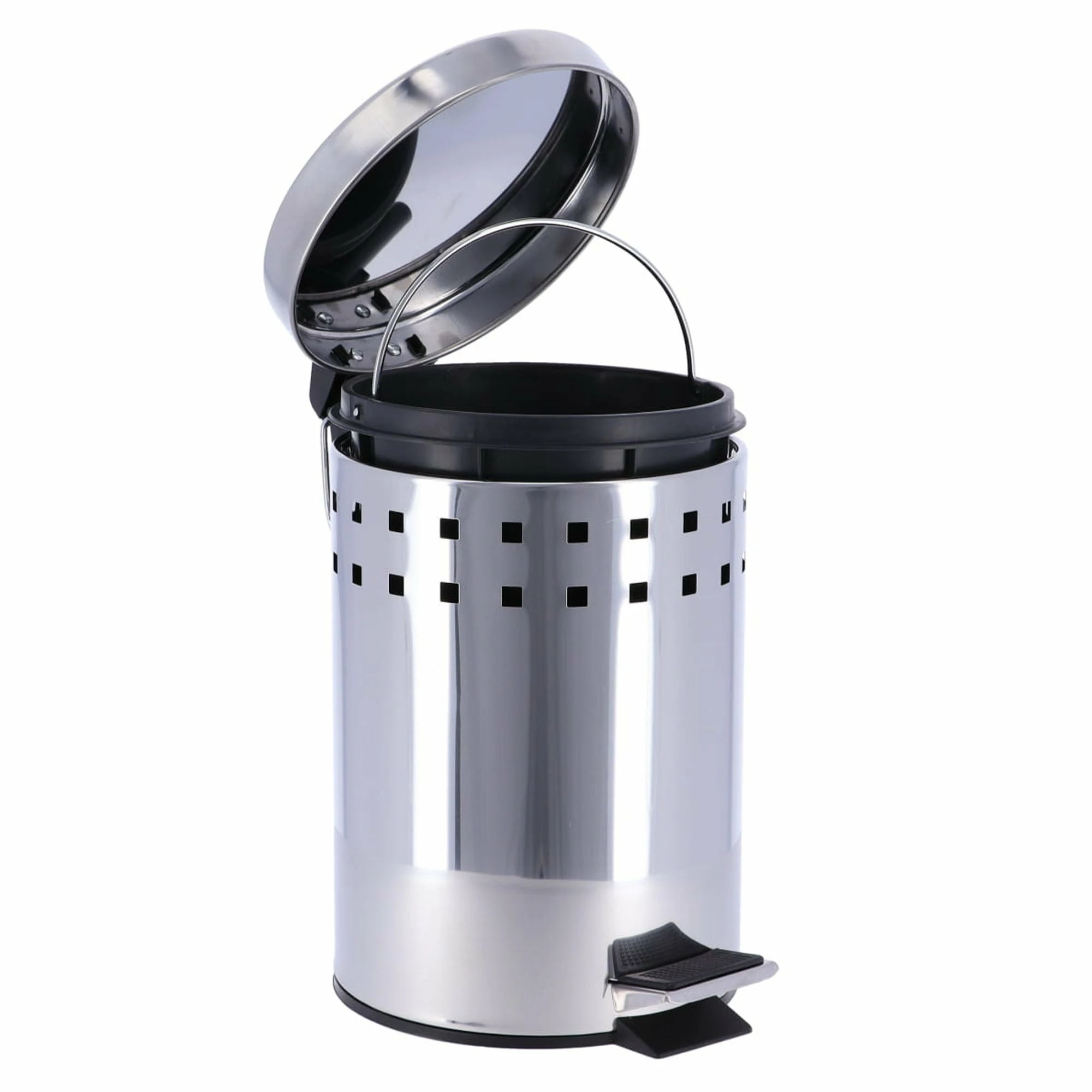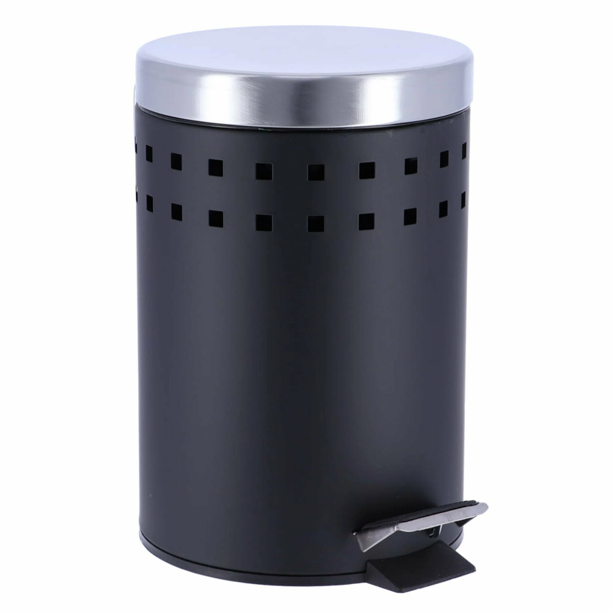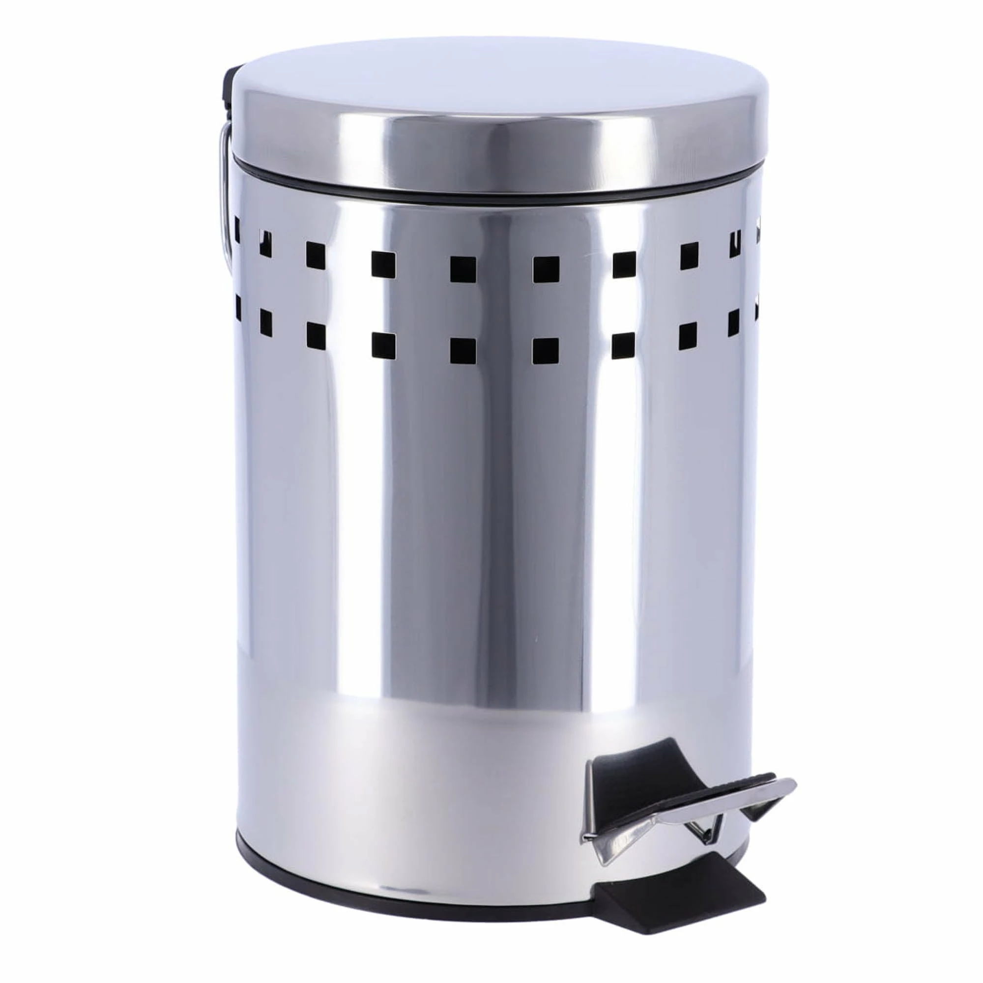 - DESIGN & STURDY: With its 2 perforated lines and stainless steel lid, this white waste basket brings a modern touch to your room in seconds. Sturdy, with its rounded top lid, it will be the perfect trash can for your bathroom. The bin is easy to move since it has a handle on the back.