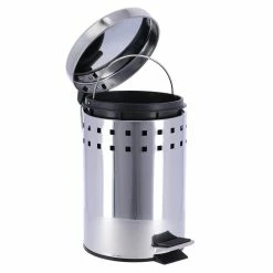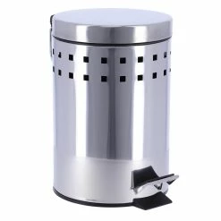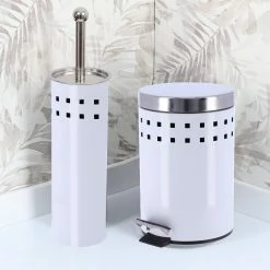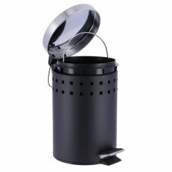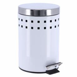 To throw away your small waste ( make-up remover pads, tissues, Q-tips…) this white round metal step trash can is essential.Also known as a dustbin, a garbage can, a waste basket or a trash can, it is usually made out of metal or plastic. Moreover, every style is available, from sleek and classic to trendy and modern, add a clean look to any bathroom, restroom, office or any roomAt Evideco, we offer various models of trash cans. For example, like mini countertop wastebaskets with a capacity of 0.5 Liter -0.3 Gal. Or open top trash cans, pedal bins (with a foot pedal) or soft close lid trash cans, with a standard capacity of 4.5-liters-1.2-Gal .Finally, to fit in this small room, you need a compact bin. This white round metal step trash can is your best option.