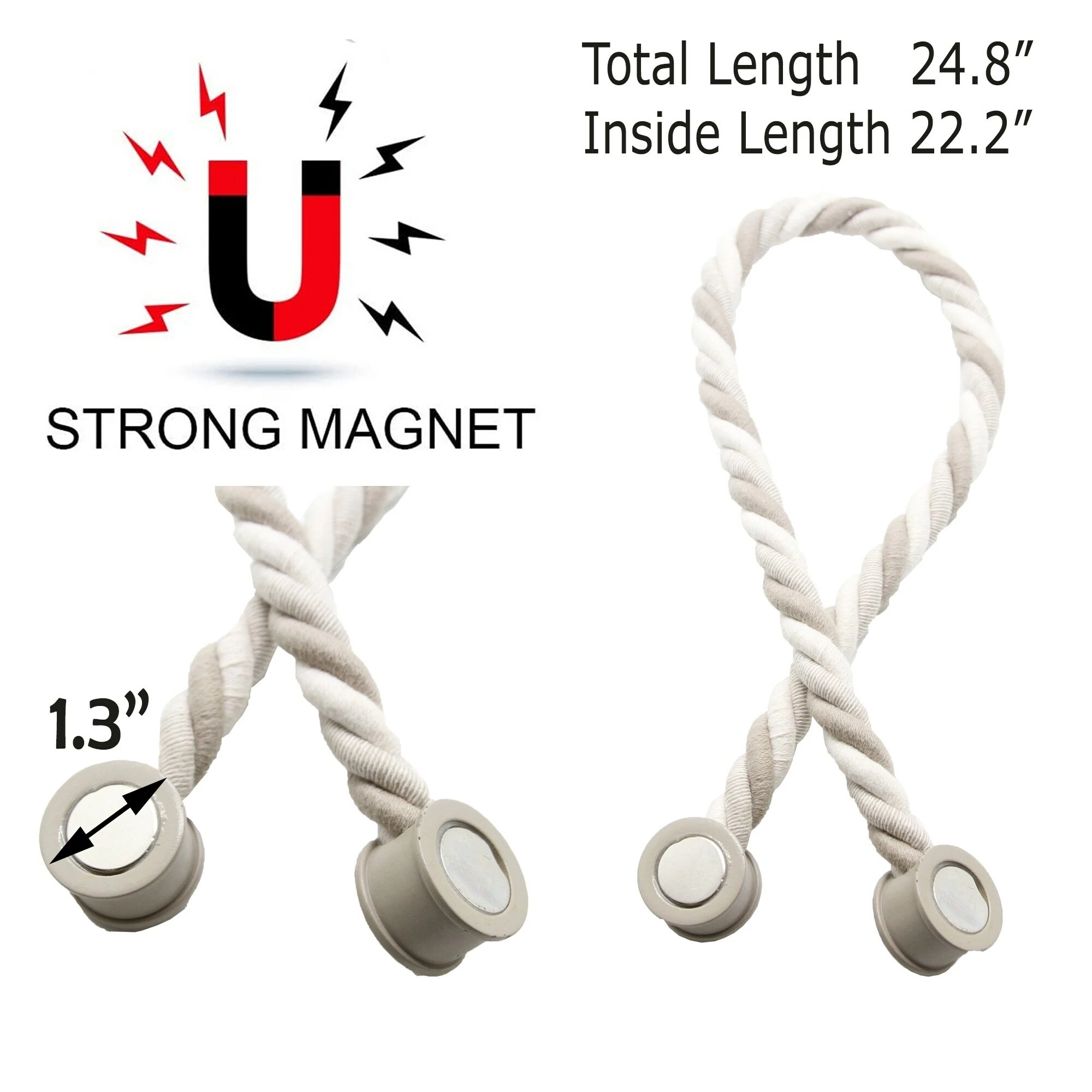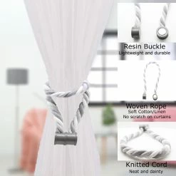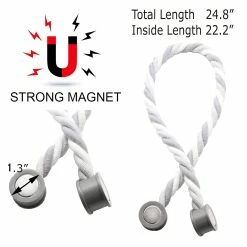 - SET OF 2 PIECES: These curtain tiebacks feature a whole length of 23 Inch, the magnetic snap is 1 inch diameter. Including 2 tiebacks with wood magnetic curtain buckles, the curtain braided rope is flexible and can be bent at will, which can meet your daily needs. Dimensions: 24.8″L x 0 1/2″W x 0 1/2″H