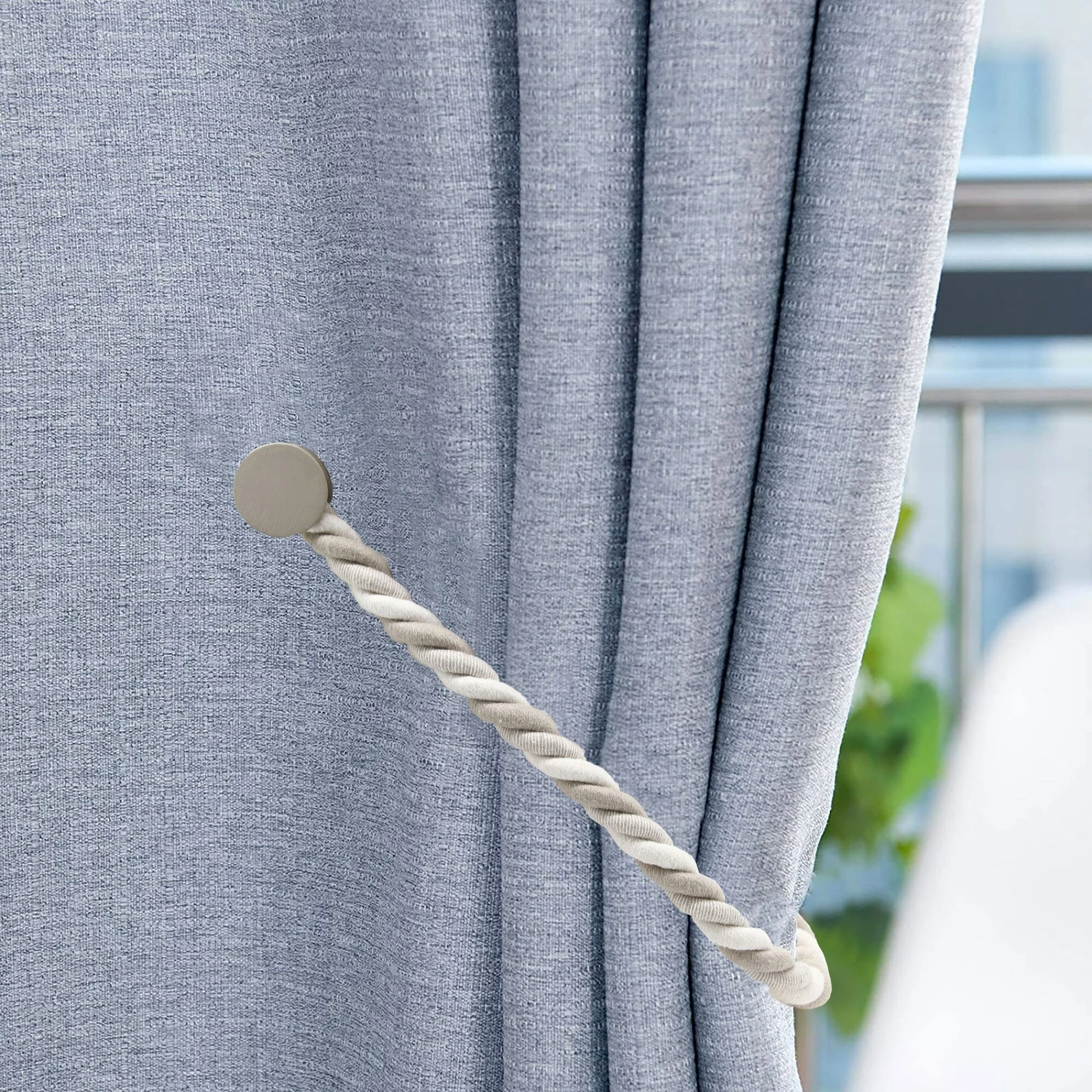 - NO INSTALLATION: No drilling, no screws, no tools required. You will be able to hold your curtains with ease. The magnetic curtain tiebacks are the perfect solution for keeping curtains open while not damaging the wall like hooks or traditional curtain tie backs. You can use magnetic tiebacks without any hardware or accessories. These textile tiebacks make it easy to allow light into any room. Material: Cotton