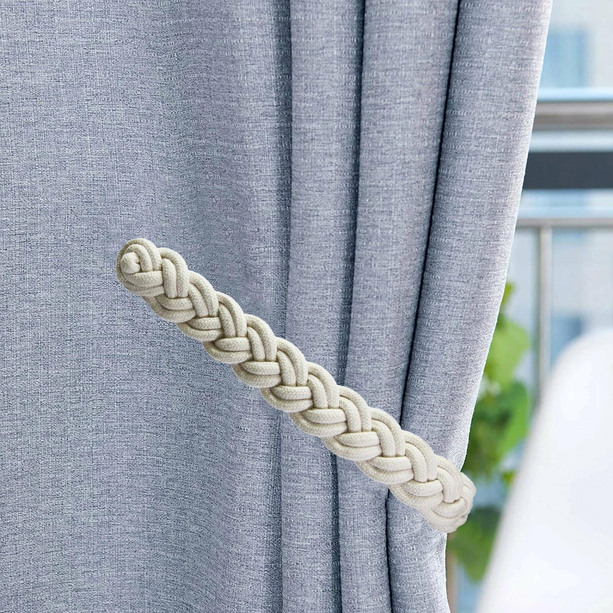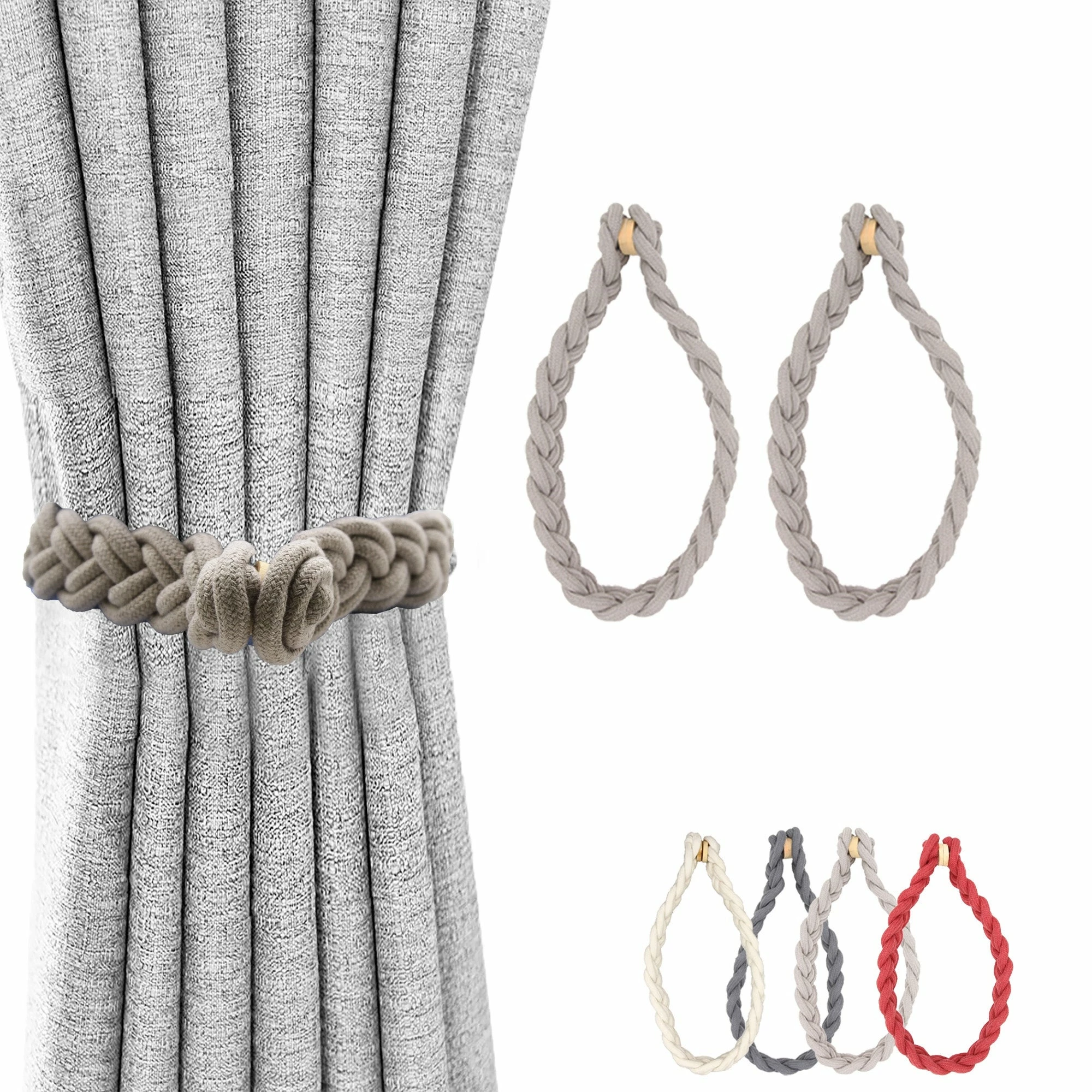- SIMPLE & ELEGANT APPEARANCE : Perfect for the family using, especially for the bedroom and living room. These magnetic woven rope tiebacks cater to any style of curtains. The holdbacks are designed with woven texture appearance rope, simple but charming. Suitable for every mode curtain. Simple to hold the curtain in any position without breaking your bricks. Beautiful and elegant magnetic curtain rope tiebacks, these nice curtain accessories make your life easier. Sold by set of 2