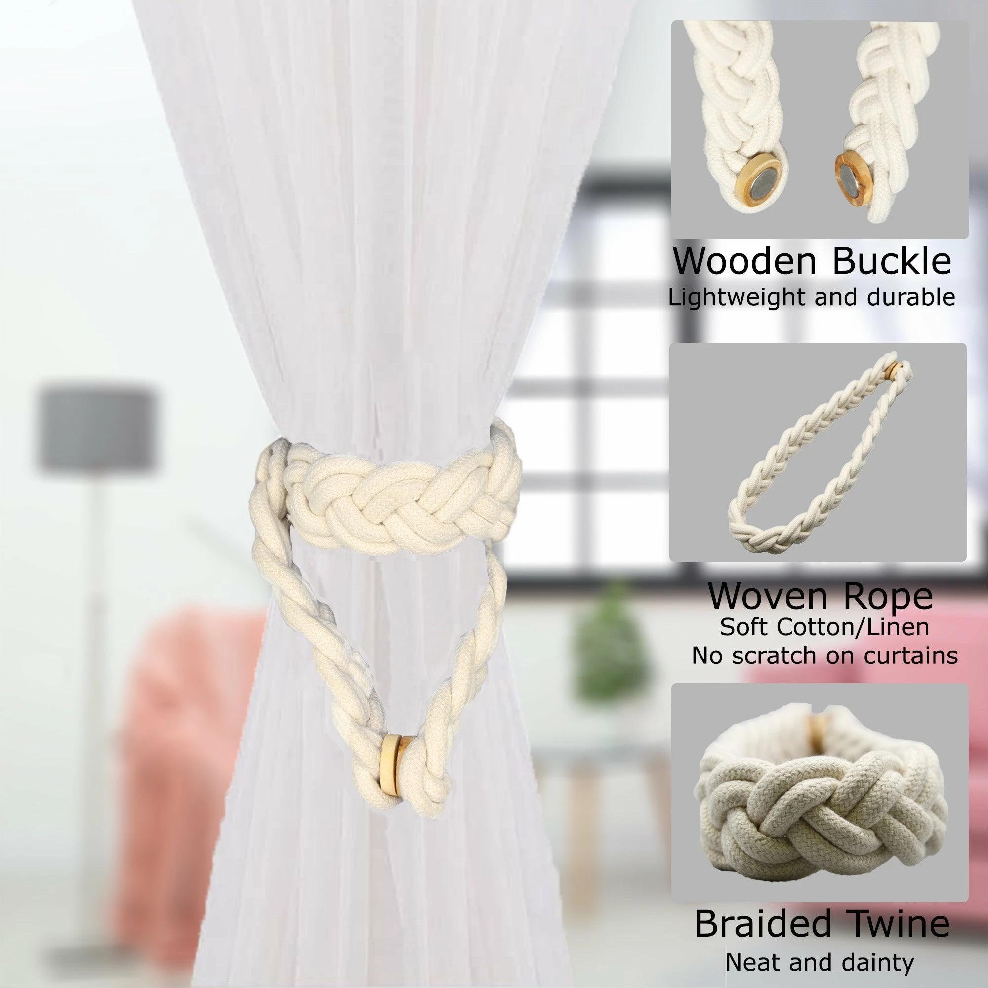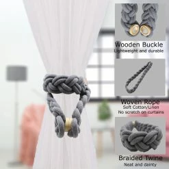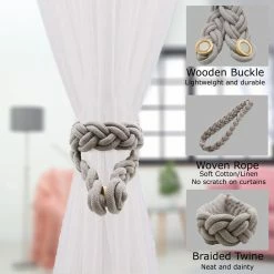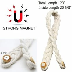 - SET OF 2 PIECES: These curtain tiebacks feature a whole length of 23 Inch, the magnetic snap is 1 inch diameter. Including 2 tiebacks with wood magnetic curtain buckles, the curtain braided rope is flexible and can be bent at will, which can meet your daily needs. Dimensions : 23″L x 1 1/2″W x 0 1/2″H
