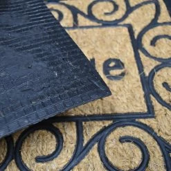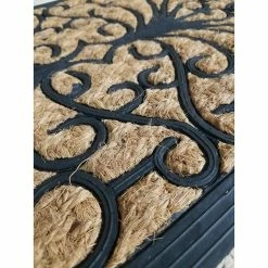 Greet your friends and family with this elegantly designed dense Homdkor front door mat Sally. Our sheltered entrance mat is made of natural braided coir fibers and rubber and meets the industry highest standards. This door mat features a richly arabesque rubber design that allows guests to wipe off grime and dirt from their shoes before entering your home. With its unique coir-rubber structure, long-lasting durability, and helpful scraper and drainage mat design, this eco-friendly doormat is an affordable choice for any family. Made with tough coconut husk fiber and eco-friendly rubber product, these dirt mats are tough enough to stand up to a variety of harsh conditions. Entrance mats are weather resistant and can withstand extreme temperatures, hence stopping bacteria from pilling up on the surface of fiber doormats. Widely used for all weather, front door, exterior patio, entry way, porch door, garage, garden or commercial deal with high traffic inside and outside. Mats should be placed in a covered, weather-protected area such as under an overhang, awning or portico. Do not expose to direct sunlight or excessive moisture. Strong and all-natural coconut fibers and non-slip rubber top are the perfect combination for withstanding all types of weather and for helping brushing and scraping your shoes so you don’t tread dirt into your house. Eco-friendly (recycled rubber and coir extracted from coconut husks). Manufactured in India, imported from France. Dimensions : 24″L x 16″ W x 1/4″H (60 L x 40 W cm). Color natural and black. Sweep, shake or vacuum to clean. This distinctive coconut fiber and rubber home rug is a work of art that will add a welcoming touch to any home entrance way.