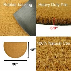 - ATTRACTIVE DESIGN: The eco-friendly material has a heavy-duty thick pile, and the uniform weaving allows air to circulate more easily, letting this eco-friendly half-round shape mat to dry up faster than traditional doormats