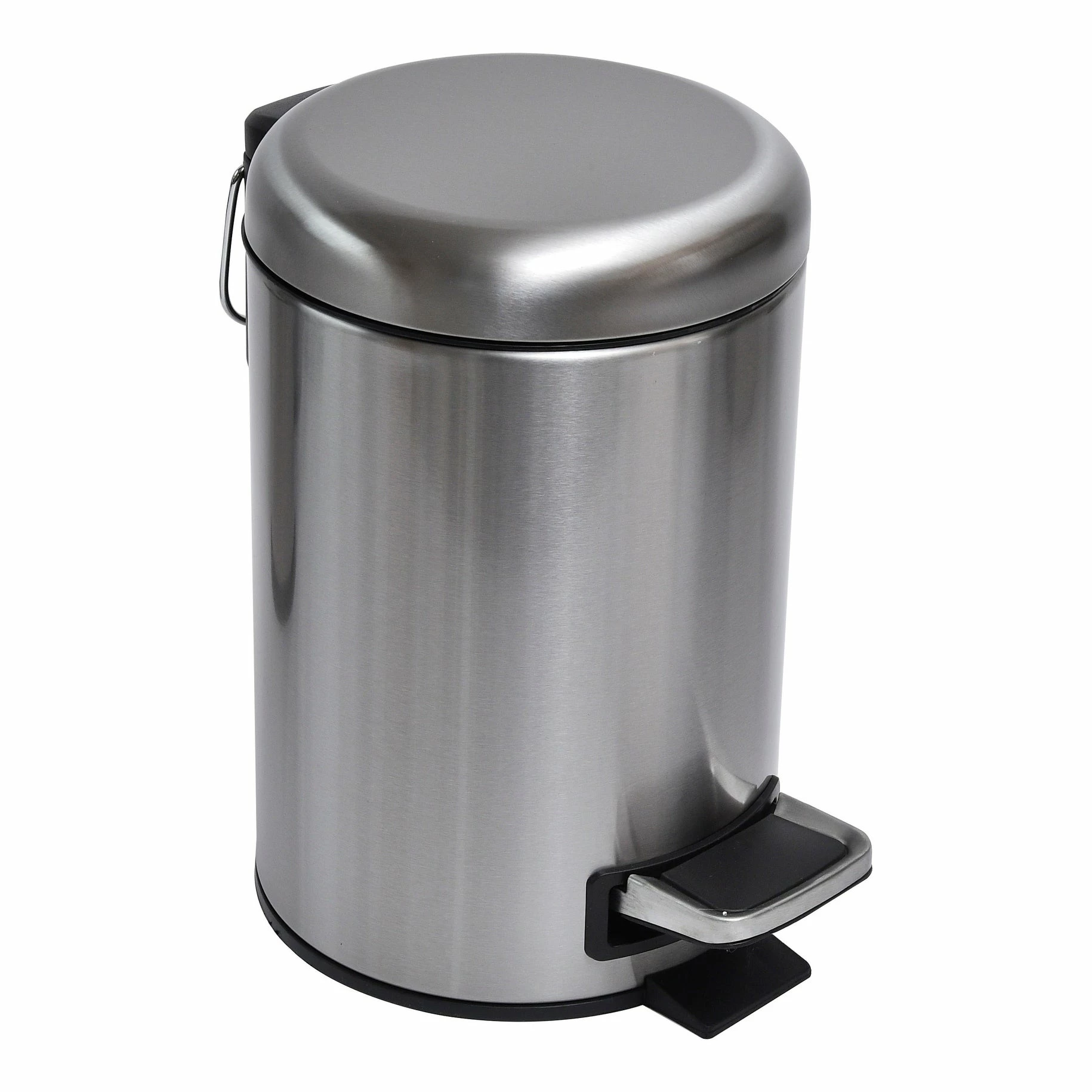 This stainless steel Soft Close Small Round Metal Bathroom Floor Step Trash Can is made of high quality finish metal, featuring a modern rounded top lid. Resistant to rust and corrosion through everyday use, it durable pedal is designed to last through heavy use. Step action makes it easy to operate. This round shaped waste bin features a lovely solid color for both the can and the lid and brings a playful and contemporary touch to your bathroom. It offers a removable inner bucket for an easy bag change and fits easily in rooms with limited space. Diameter of 6.9-Inch and height of 10-Inch. Wipe clean. Imported from France, made in PRC. Color chrome-stainless steel, 3 solid colors available : white, mat black or stainless steel. This waste basket adds a modern accent to any bathroom or under a desk with its capacity of 3-Liter/0.8-Gal.