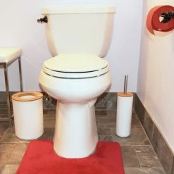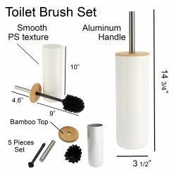 - NATURAL DESIGN: The white container combined with the bamboo lid of this toilet brush holder set PADANG white Bamboo brings a countryside style in your bathroom. Dimensions of 3.8 Diameter by 14 3/4 H Inches