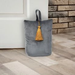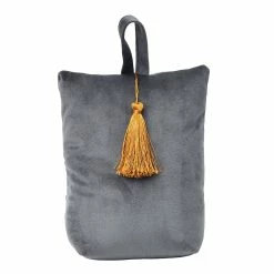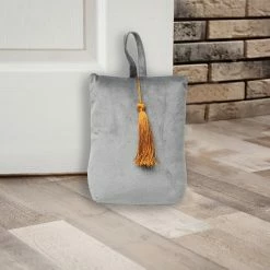 Leaving in an high wind area or tired to open the same door ten times a day? If you’re looking for a portable bag door stop, this is the one to get. This door stopper Velvet is as useful as beautiful and will compliment your home decor in seconds. Finally a door stop that actually stops the door and keeps it open, works great on carpet and hard flooring and very easy to move around. With its unique design of the Thirties style, this door holder is the perfect choice to create character in even the small areas of your home like your bedroom, bathroom, kid’s room or front door. With a weight of 2.2 lbs (1 kg), this door stopper bag will hold interior doors open, but is not recommended for heavy front doors or exterior doors, not suitable for use as a toy for a child or dog. A sturdy loop comes pre-attached so you can hang this handy door stopper on a doorknob when not in use. Made of polyester, filled with sand. Imported from France, made in PRC, dimensions of 6″L x 4.6″W x 8″H. 5 colors available : turquoise blue, light grey, dark grey, dark green, gold, all with a golden tassel. Perfect size to hold door open and small enough that itβs not a tripping hazard. Whether you’re looking for a perfect gift to spruce up your friend’s home, or if you need a housewarming present, Homdkor has something for everyone!