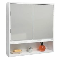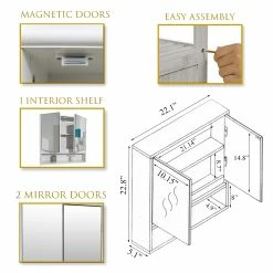 - KEEP EVERYTHING IN ONE PLACE: All your items can be easily hidden away from view by closing the 2 mirrored doors. Included one inside white shelf (non adjustable). Perfect for storing and neatly organizing smaller hygiene items, such as cosmetics, lotions or medical supplies