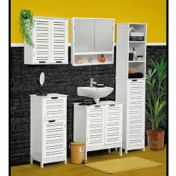 - SPACE-SAVER CABINET: Get a maximum space efficiency without sacrificing valuable floor space with dimensions of 22.8″H x 22.1″L x 5.1″W (58 H x 56 L x 12.8 W cm). Ideal for keeping your toiletries right at your fingerprints. Made of wood (MDF), color white